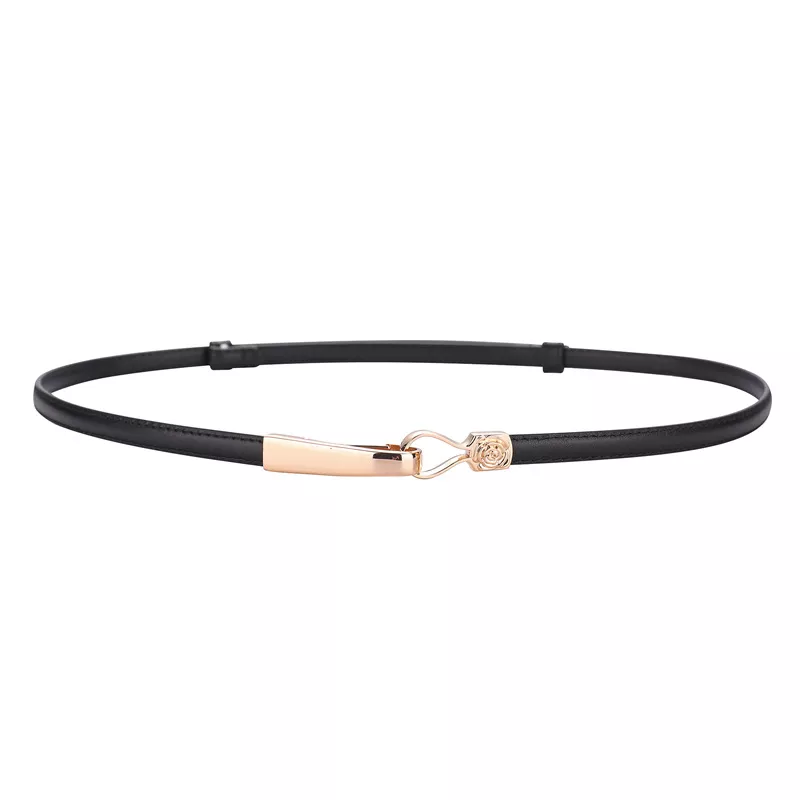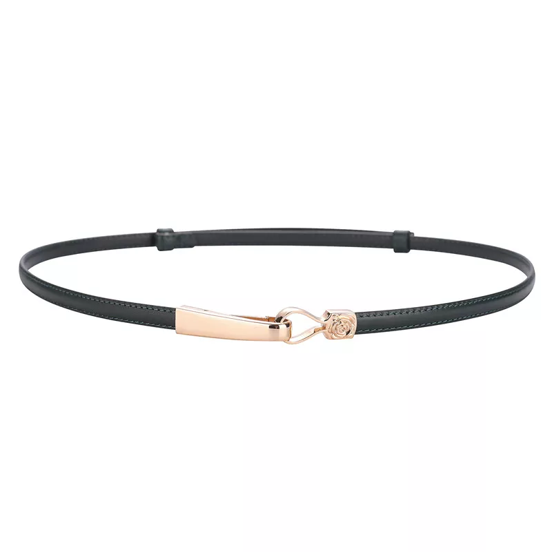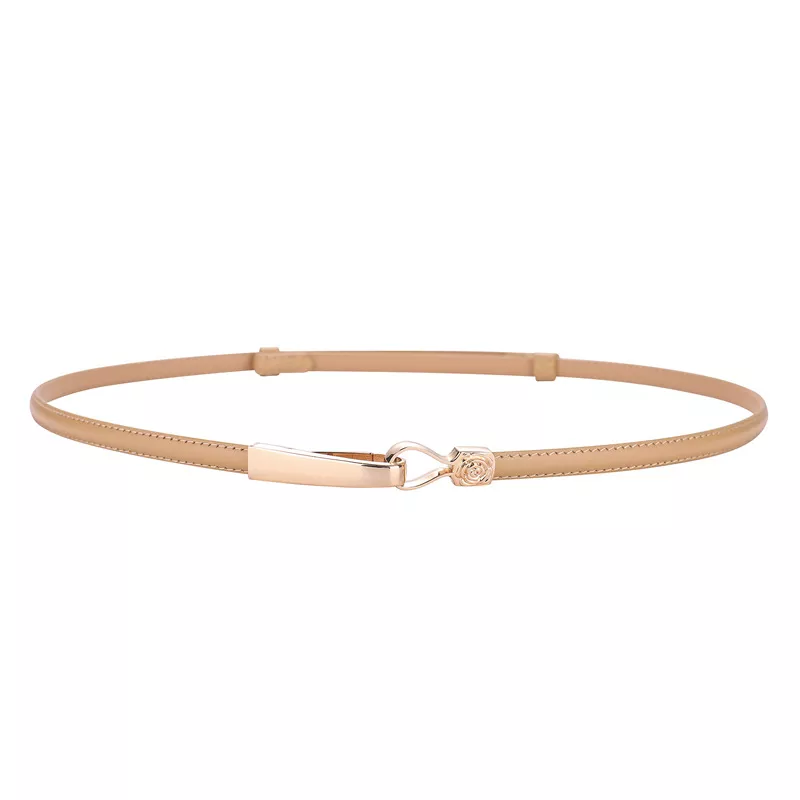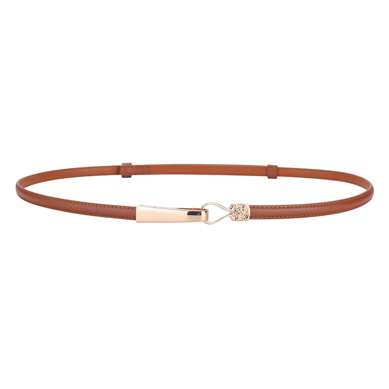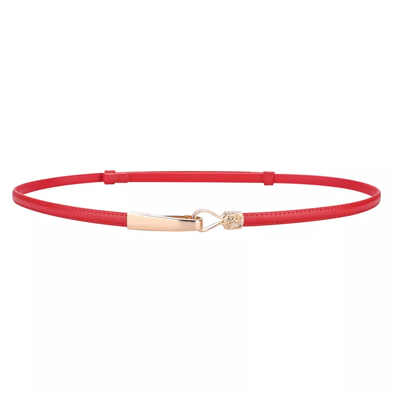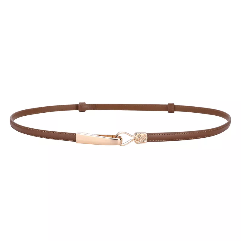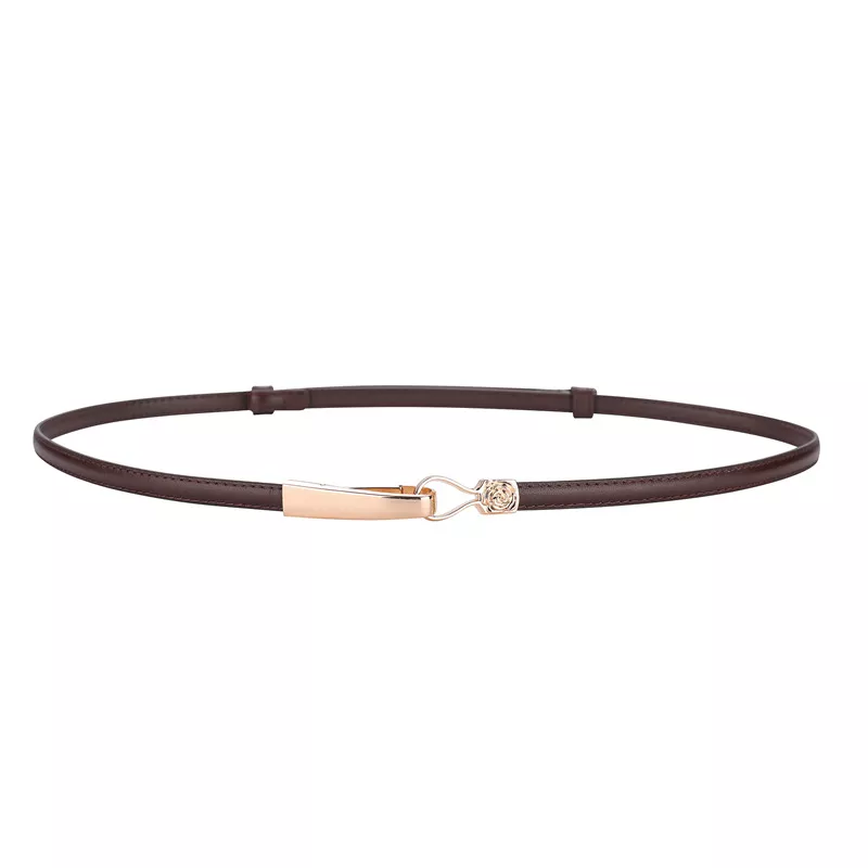 Elegant Skinny Women’s Leather Belt with Gold Buckle – Adjustable Slim Waistband for Dress & Jeans
