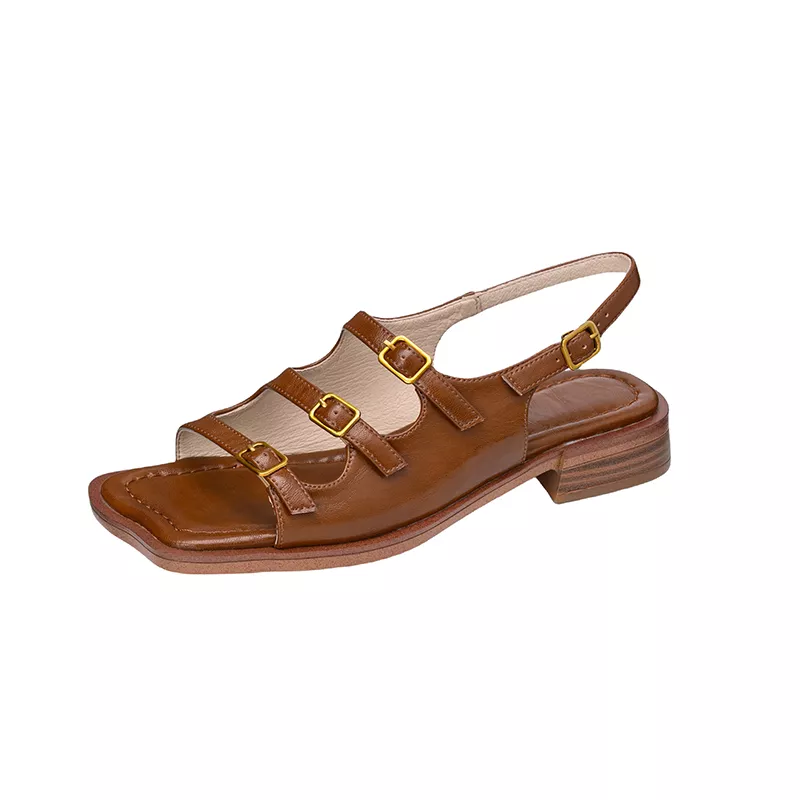 More than just a pair of shoes, these sandals are a fusion of fashion and function. The genuine cow leather upper gives them a premium touch and lasting durability. The non-slip TPR outsole offers reliable grip on different surfaces, while the low square heel adds subtle lift without putting pressure on your feet. Their open design keeps things breezy, while the ankle strap adds a touch of charm and extra support.