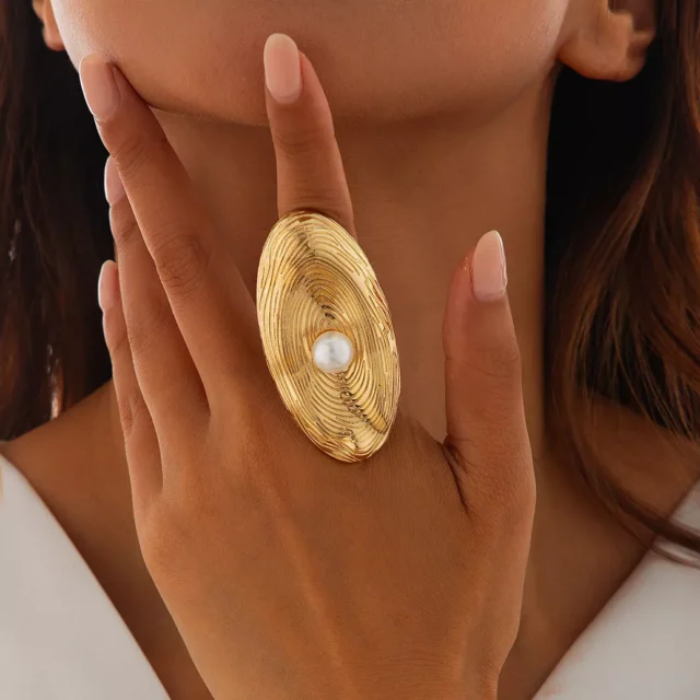 Elevate your accessory game with this stunning Exaggerated Elliptical Spiral Pattern Ring, a must-have addition to any fashion-forward jewelry collection. With its unique gothic design and delicate imitation pearl accents, this ring exudes a sophisticated yet edgy vibe. Perfect for any occasion, whether you’re dressing up for a night out or adding a chic touch to your everyday style, this ring is sure to turn heads.