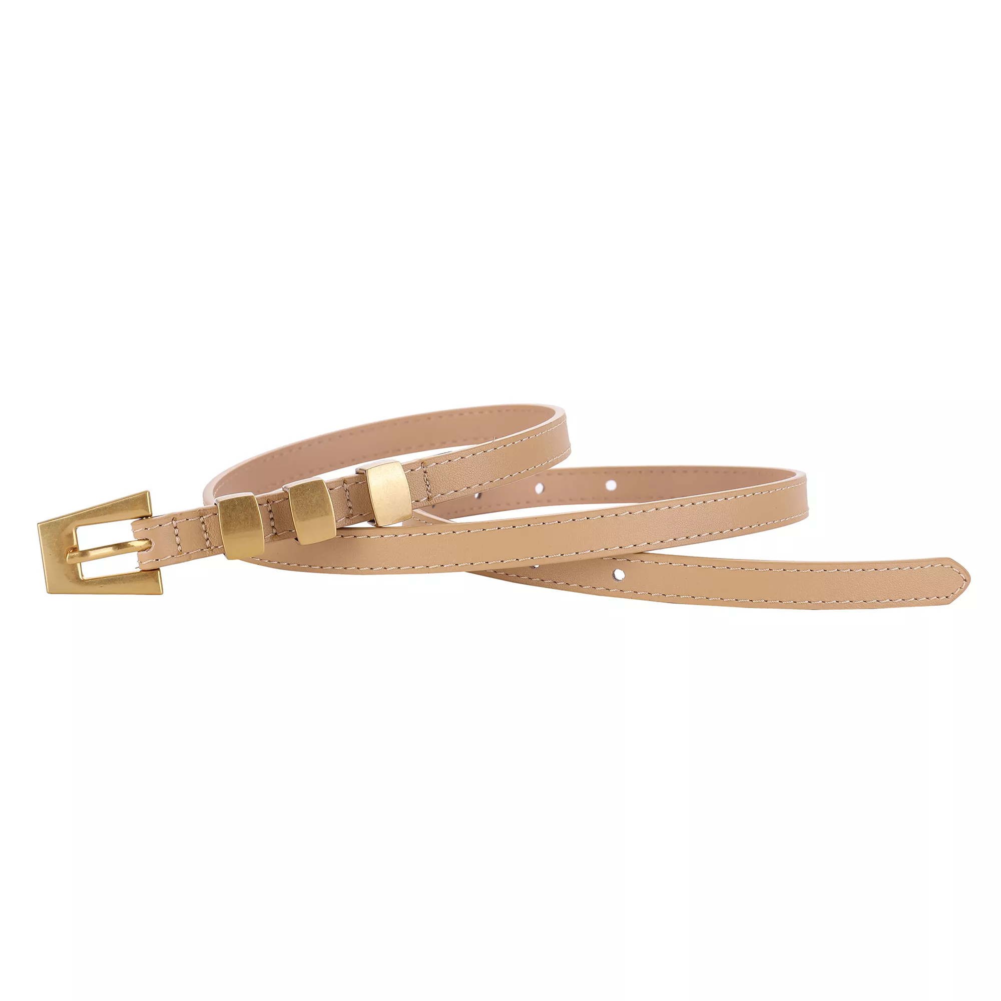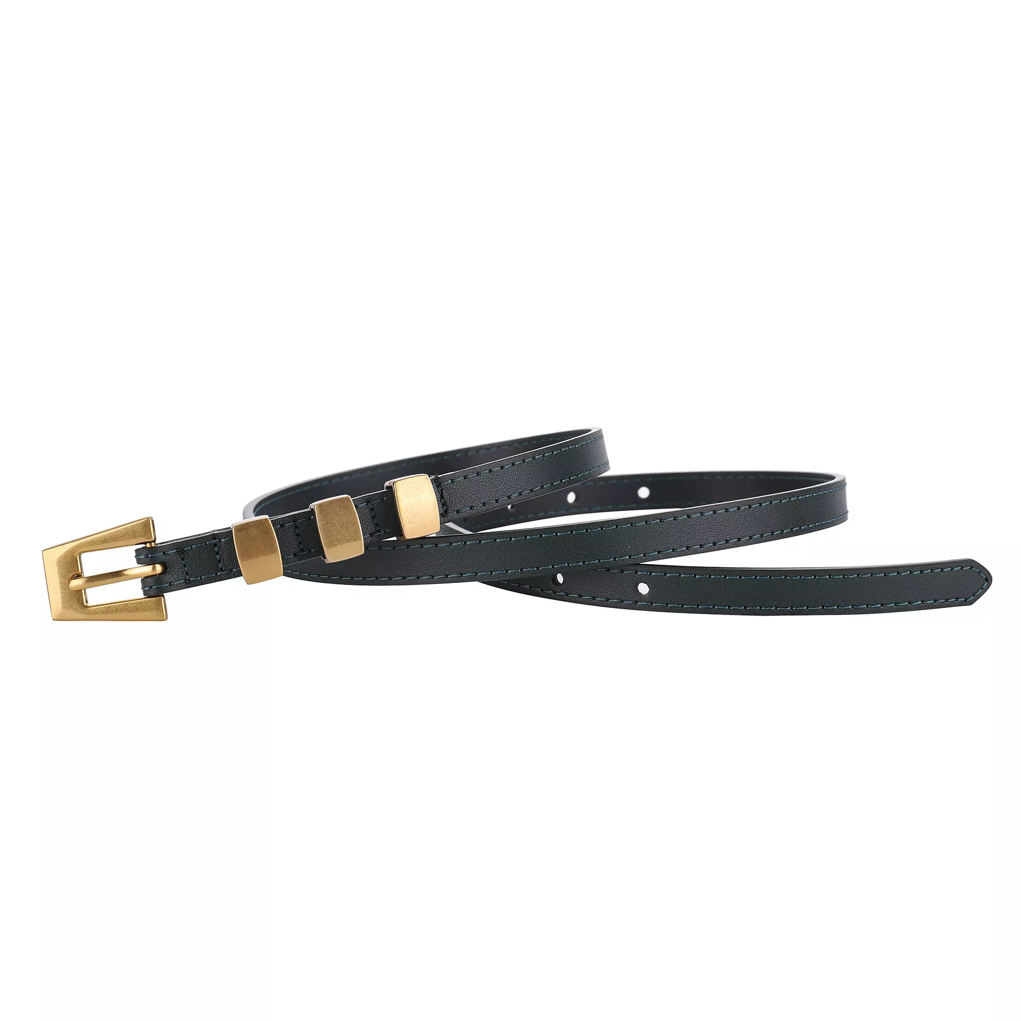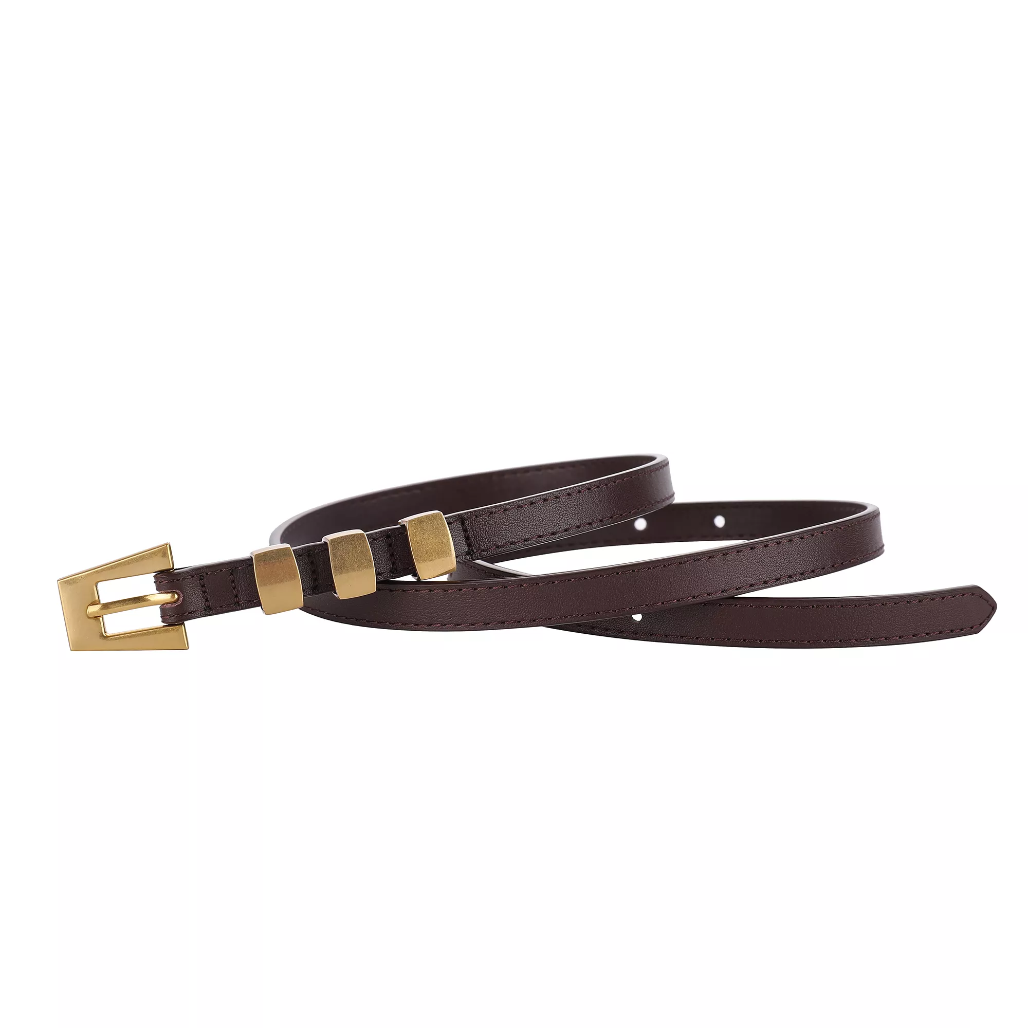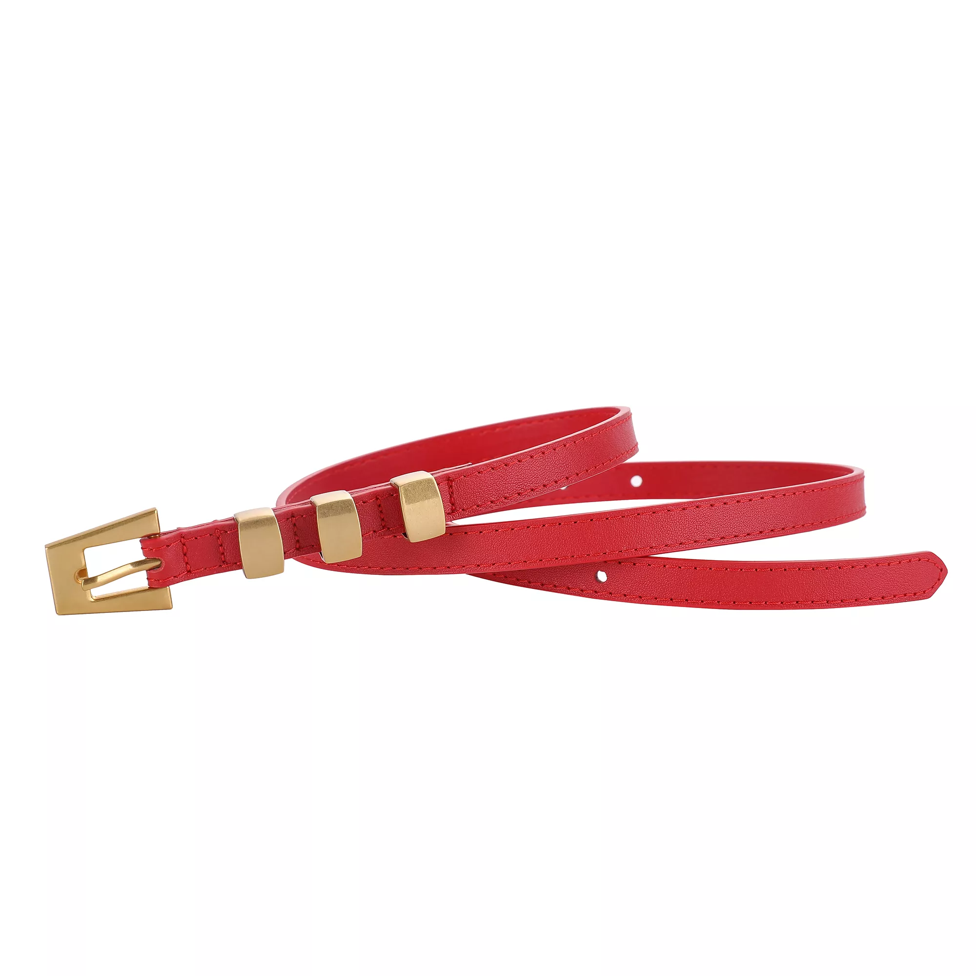 Fashion Skinny Leather Waist Belt with Gold Buckle for Women – Cowhide Decorative Waistband
