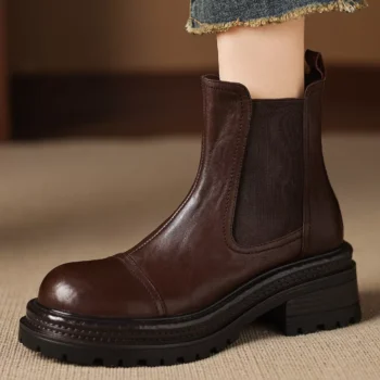 Genuine Leather Chunky Heel Loafers for Women – Versatile Round Toe Pumps