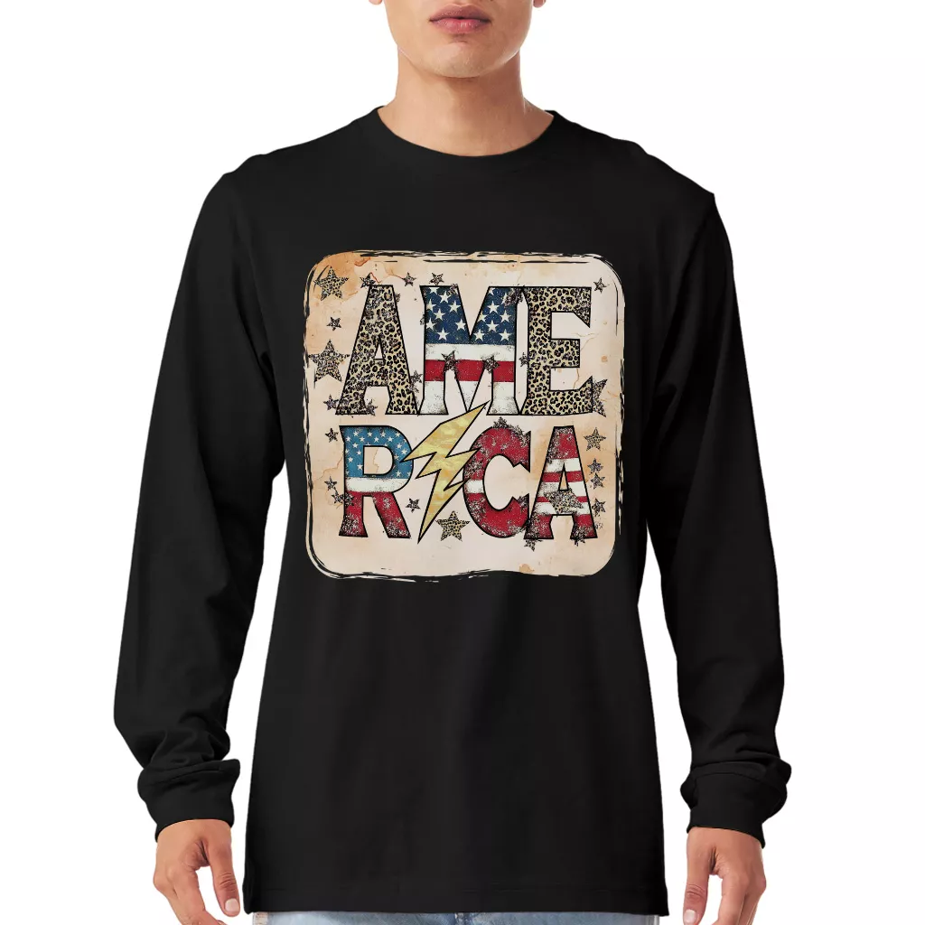 America Graphic Long Sleeve T-Shirt – Independence Day T-Shirt – Retro Design Basic Tee
