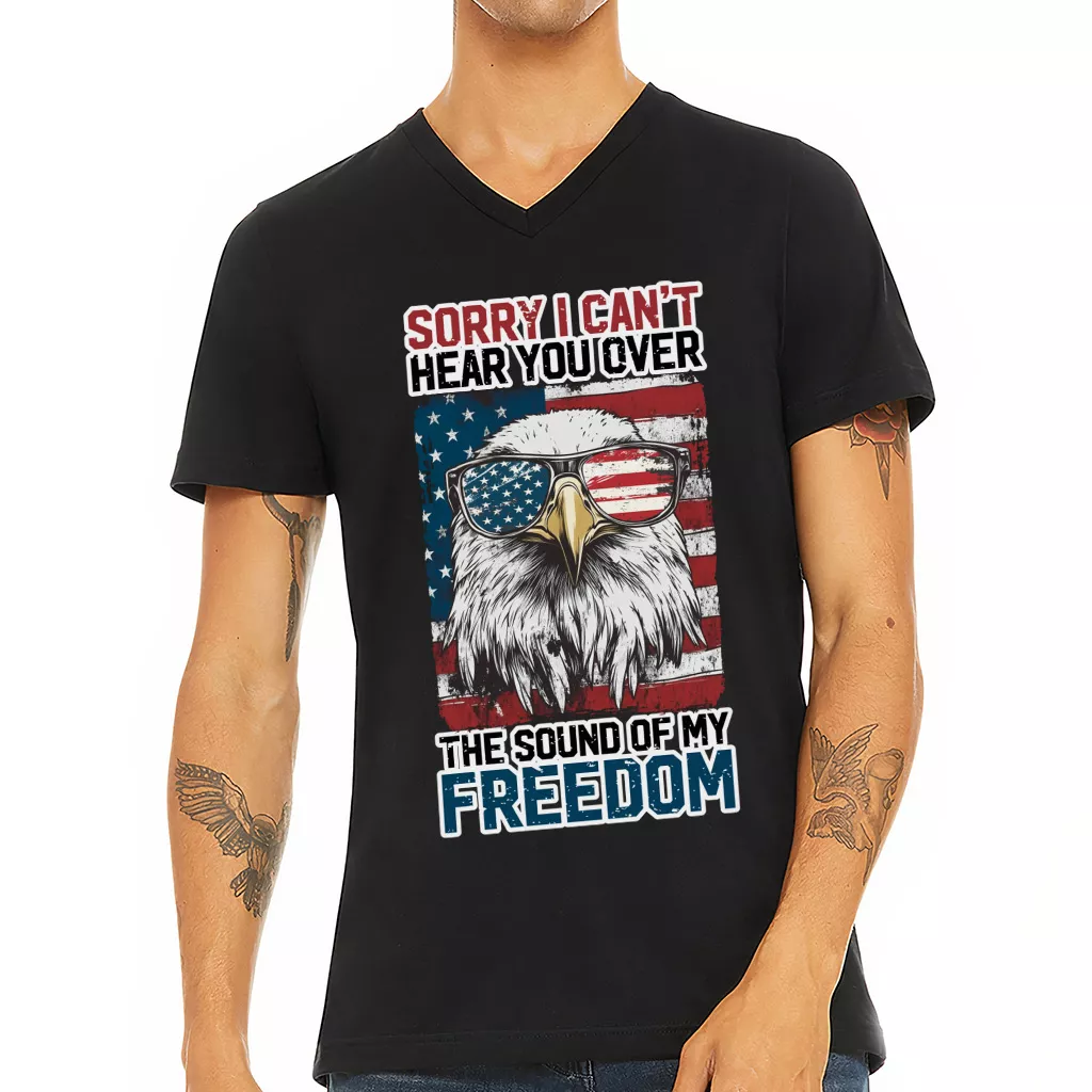 Can’t Hear You Over The Sound Of My Freedom V-Neck T-Shirt – American Flag Basic T-Shirt – Cool Eagle Tee