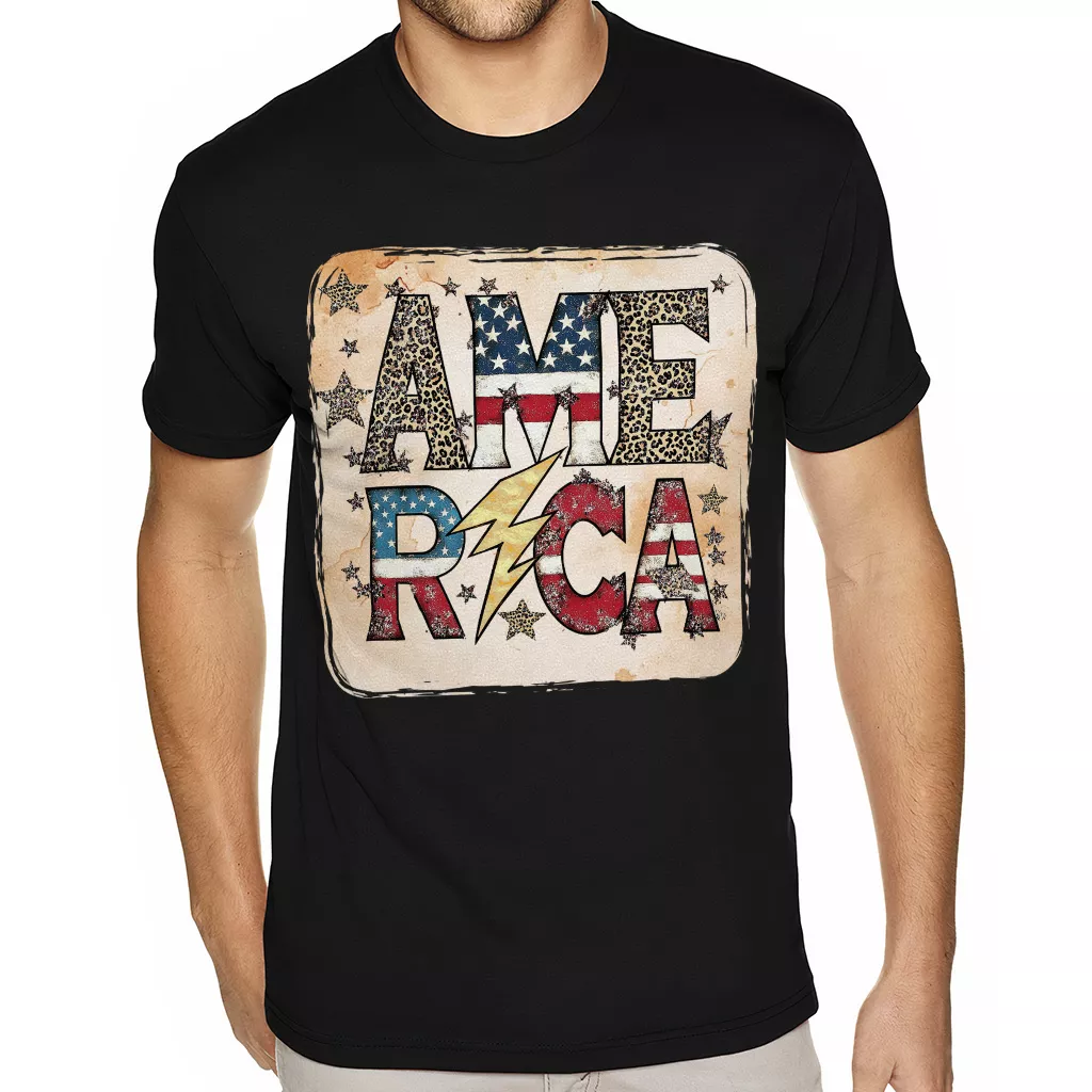 America Graphic T-Shirt – Retro Design Heavy Cotton Tee – Independence Day Shirt