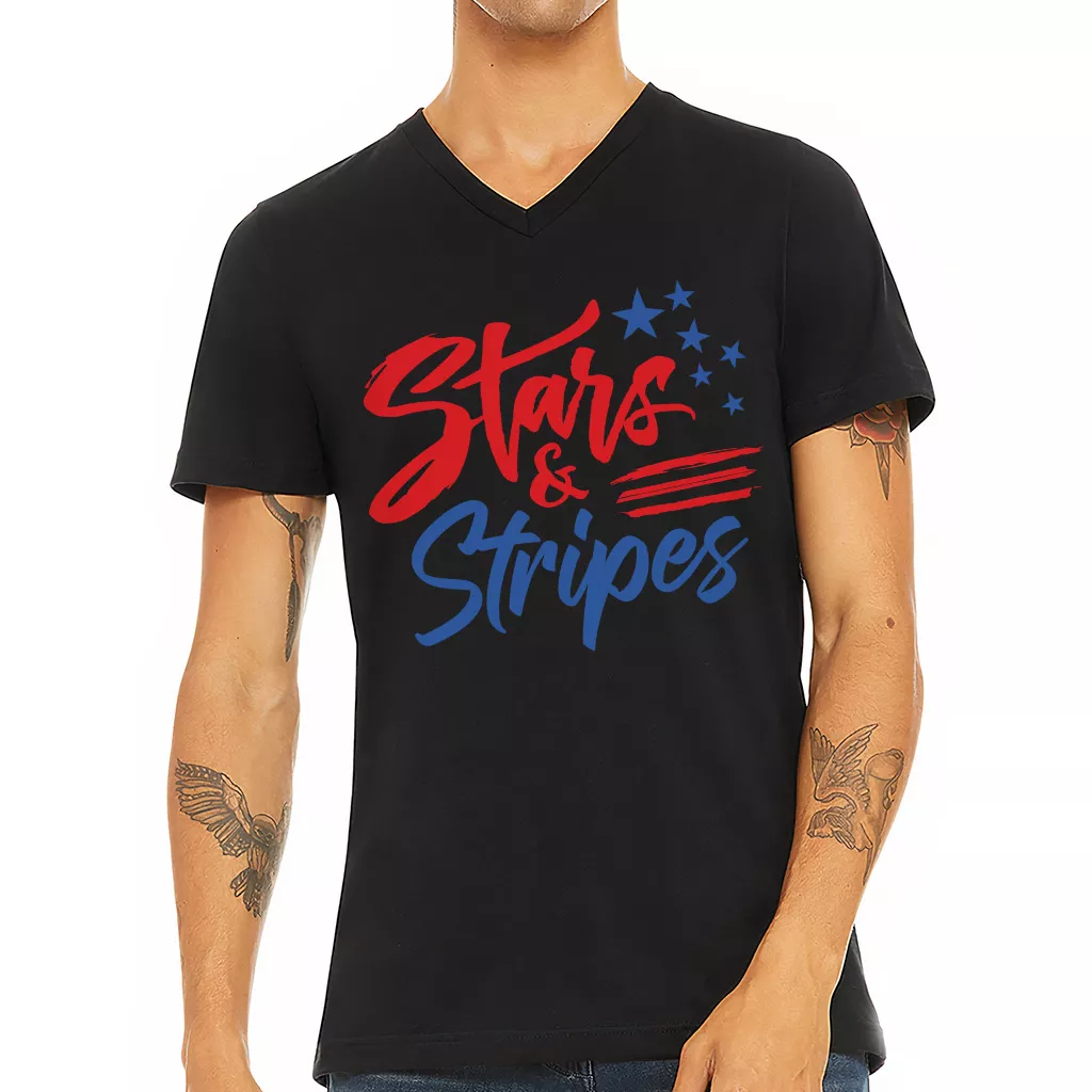 Stars and Stripes V-Neck T-Shirt – Memorial Day Basic T-Shirt – Minimalist Design Tee