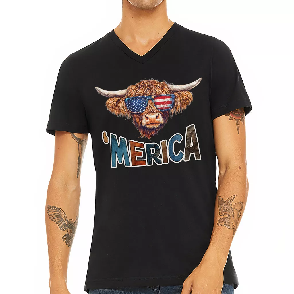Highland Cow V-Neck T-Shirt – Cool Design Basic T-Shirt – Merica Tee