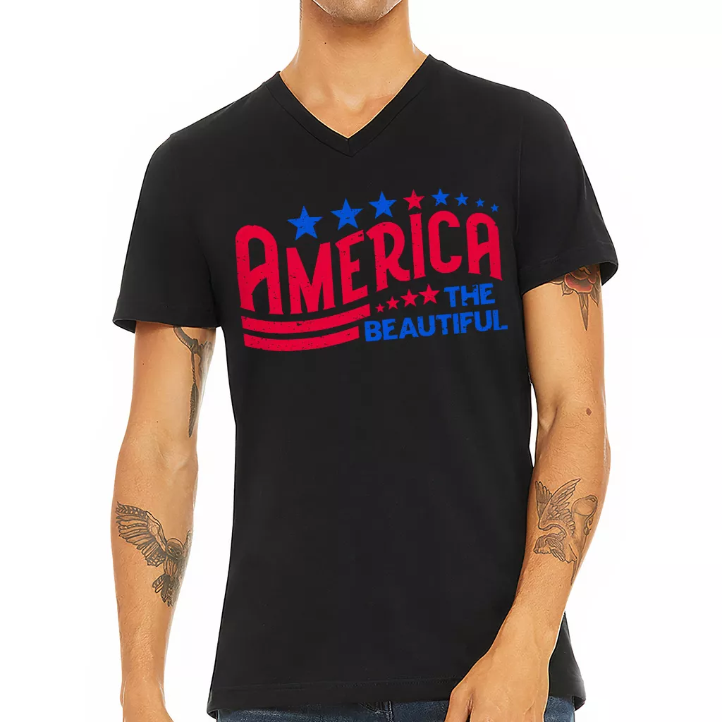 America The Beautiful V-Neck T-Shirt – 4th Of July Basic T-Shirt – Retro Tee