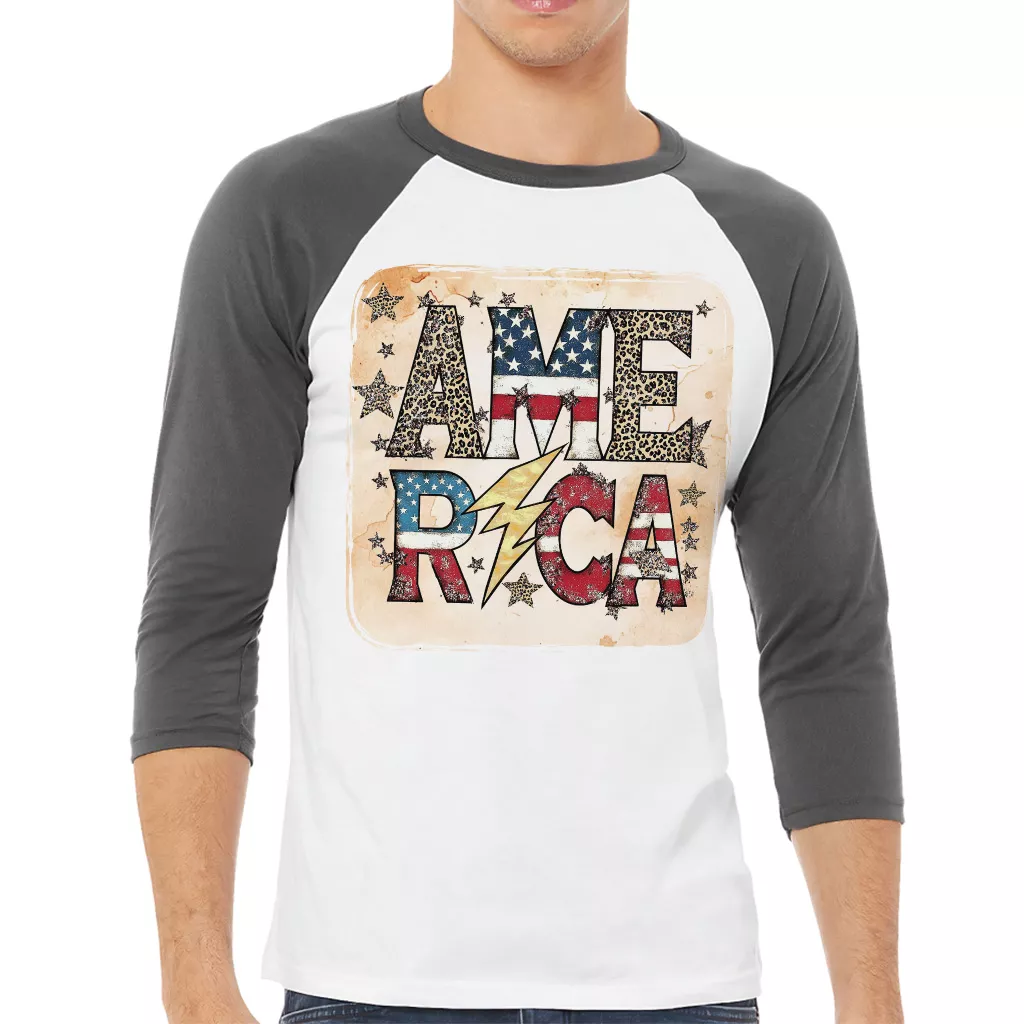America Graphic Baseball T-Shirt – Independence Day 3/4 Sleeve – Retro Design Raglan Jersey Shirt