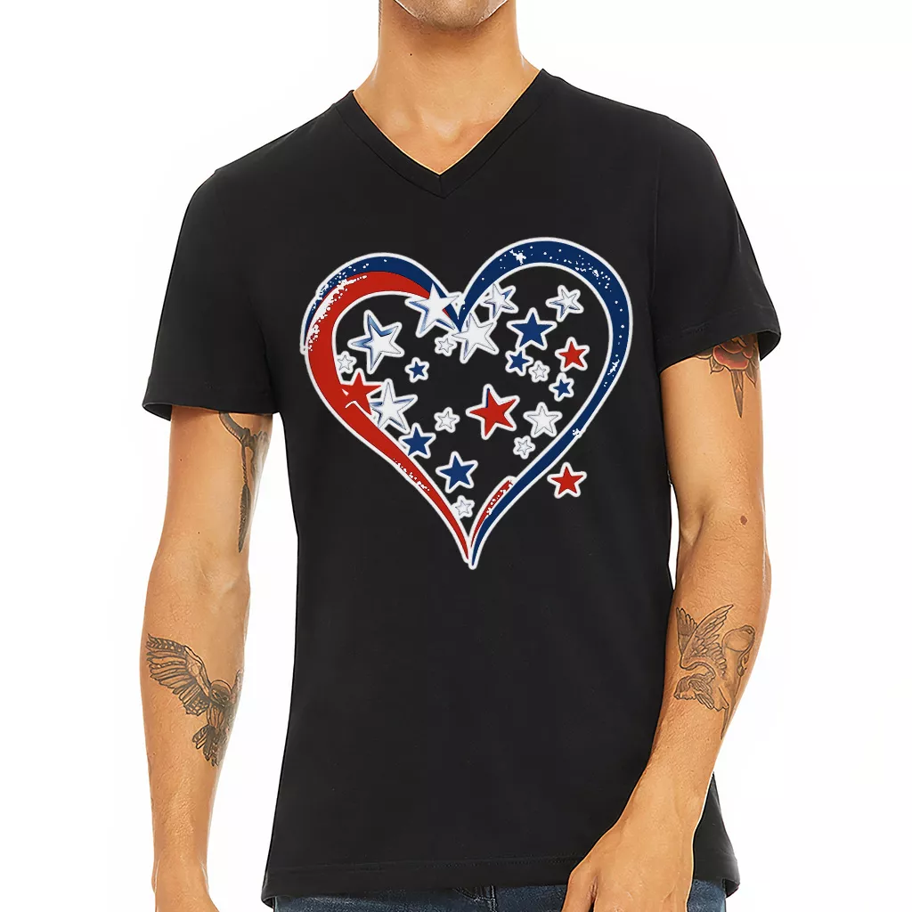Red White Blue Heart V-Neck T-Shirt – Cute USA Basic T-Shirt – USA Flag Tee