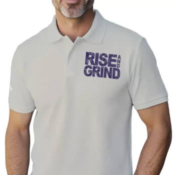 Rise and Grind adidas Polo Shirt – Motivational Gym Short Sleeve Tactical Shirts – Inspirational Lightweight Golf Shirts