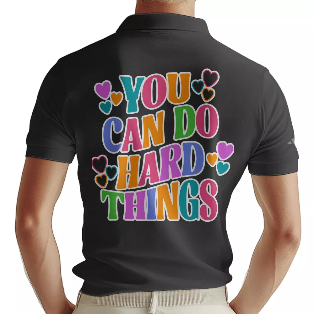 You Can Do Hard Things adidas Polo Shirt – Encouraging Short Sleeve Tactical Shirts – Motivational Gift Lightweight Golf Shirts