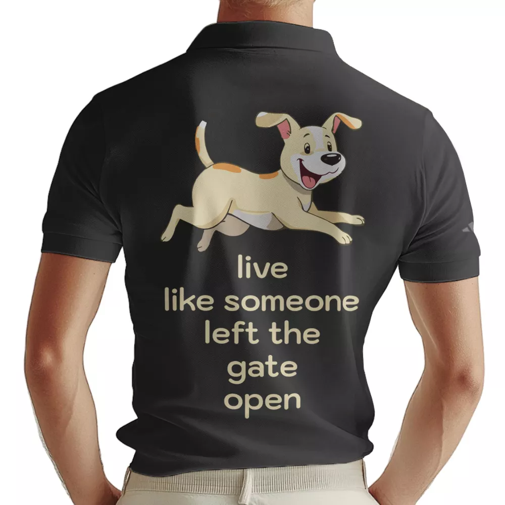Live Like Someone Left the Gate Open adidas Polo Shirt – Positive Message Short Sleeve Tactical Shirts – Inspirational Lightweight Golf Shirts