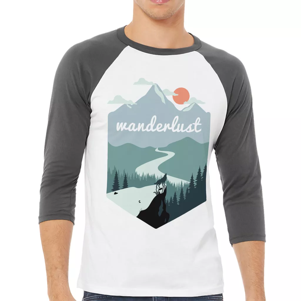 Wanderlust Baseball T-Shirt – Mountains 3/4 Sleeve – Outdoorsy Raglan Jersey Shirt