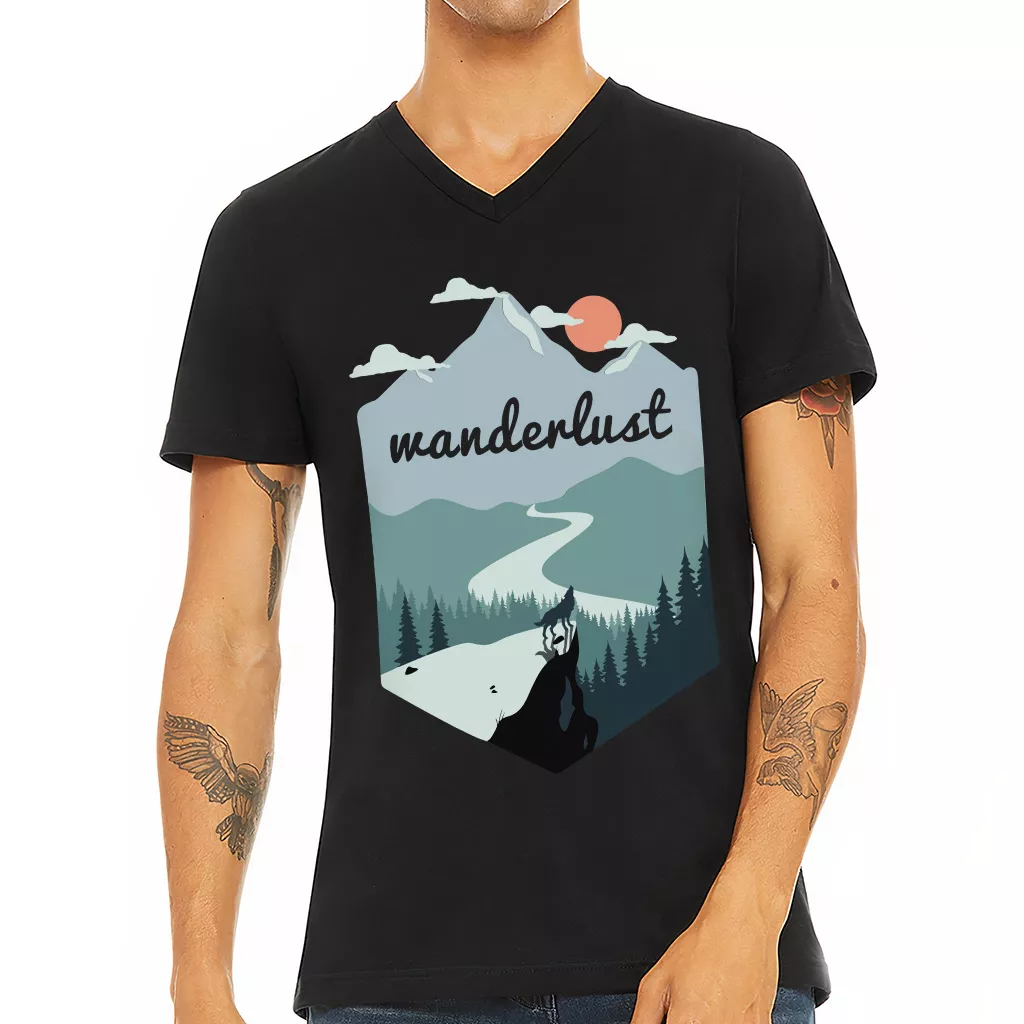 Wanderlust V-Neck T-Shirt – Outdoorsy Basic T-Shirt – Mountains Tee