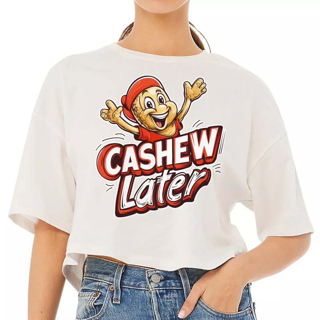 Cashew Later Cropped T-Shirt – Snack Lover Trendy Tee – Funny Cashew Women’s Basic T-Shirt