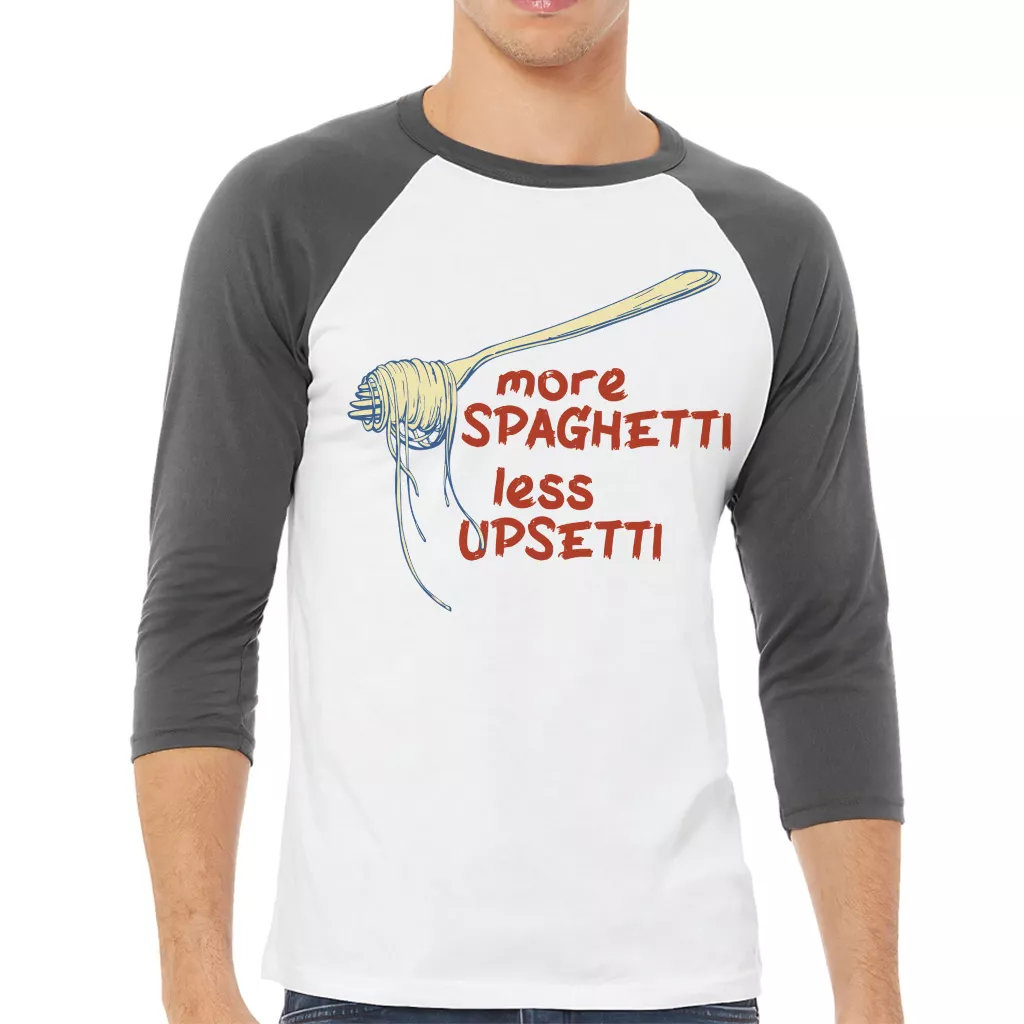 More Spaghetti Less Upsetti Baseball T-Shirt – Retro Graphic 3/4 Sleeve – Vintage Aesthetic Raglan Jersey Shirt