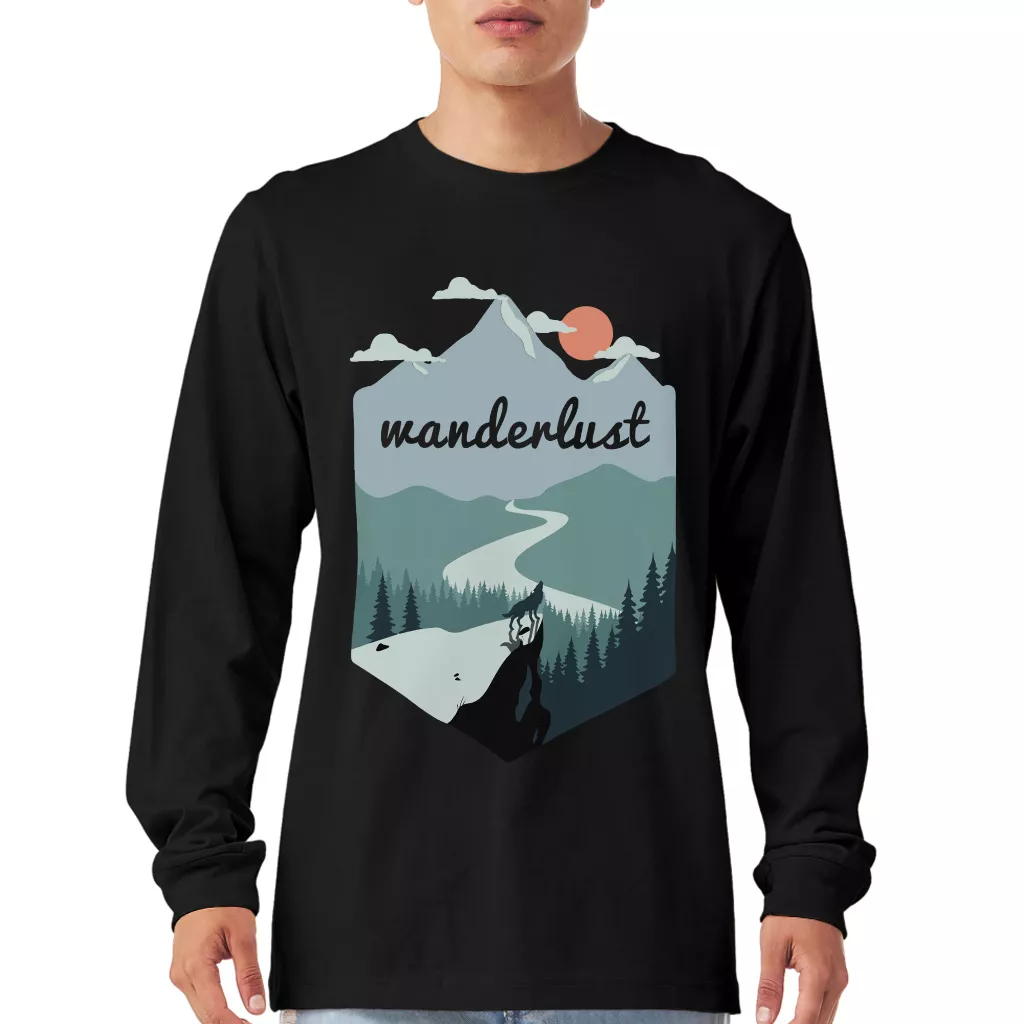 Wanderlust Long Sleeve T-Shirt – Outdoorsy T-Shirt – Mountains Basic Tee