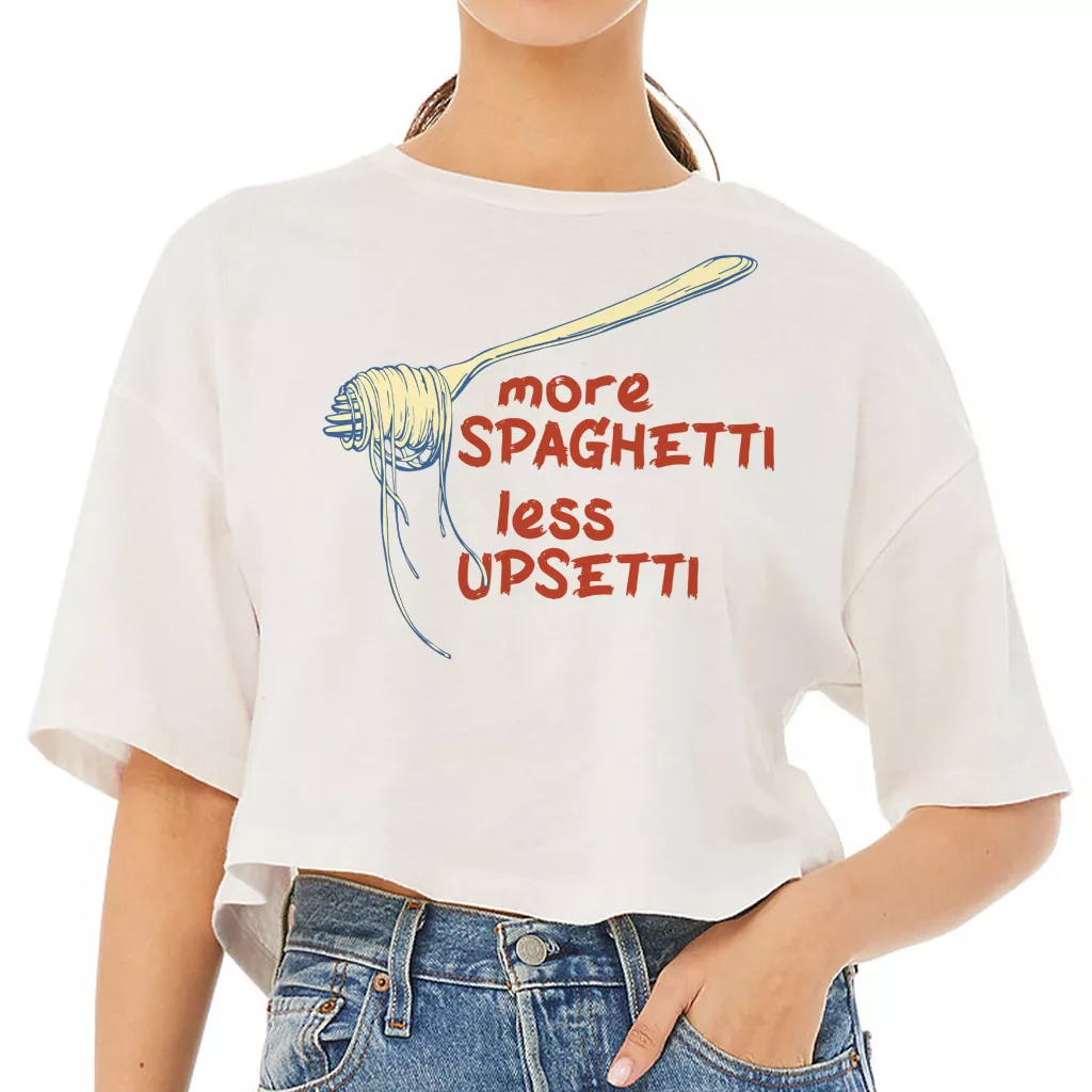 More Spaghetti Less Upsetti Cropped T-Shirt – Retro Graphic Trendy Tee – Vintage Aesthetic Women’s Basic T-Shirt