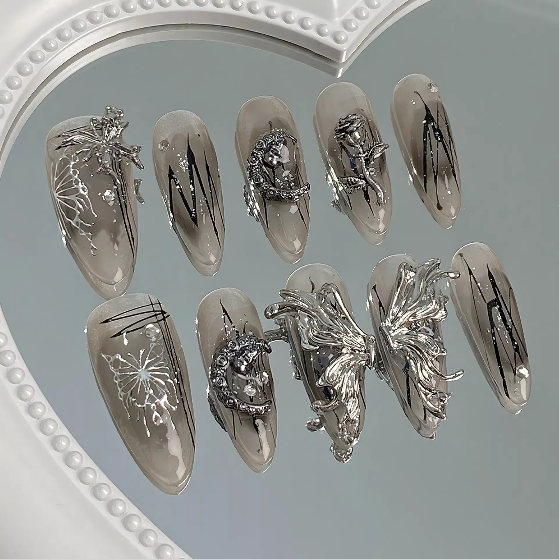 • Unique Design: Each nail features a stunning metal liquid butterfly design, adding a touch of gothic elegance to your look.