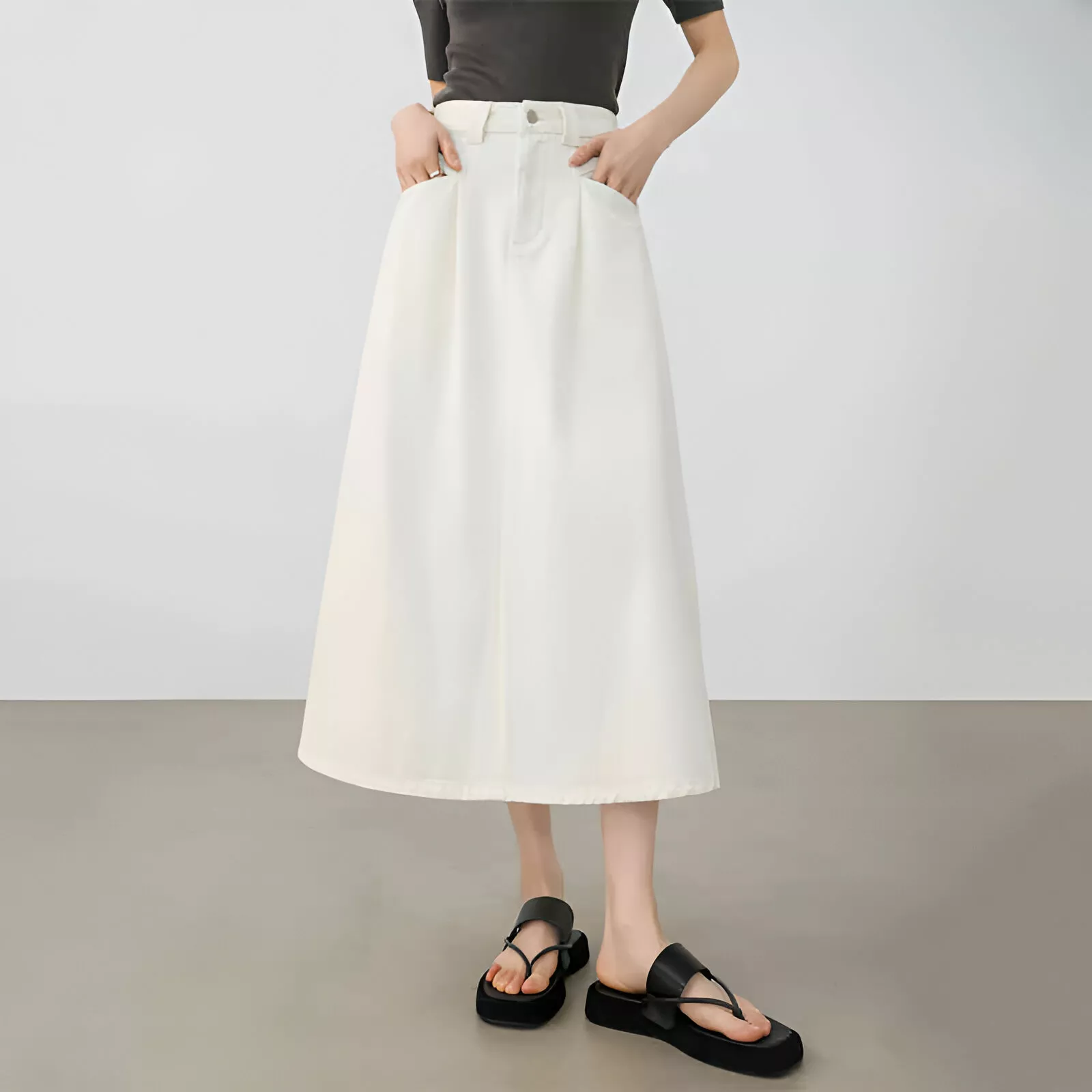 Step into effortless style with this High Waist Denim A-Line Skirt, a wardrobe staple that beautifully blends vintage charm with everyday wearability. Crafted from 100% cotton denim, this mid-calf skirt offers breathable comfort and structure in one. Its high waist and A-line silhouette flatter your figure, while the practical addition of pockets gives it a street-smart edge. Whether you’re dressing up for the office or styling it down for weekend strolls, this piece brings casual sophistication to any look.