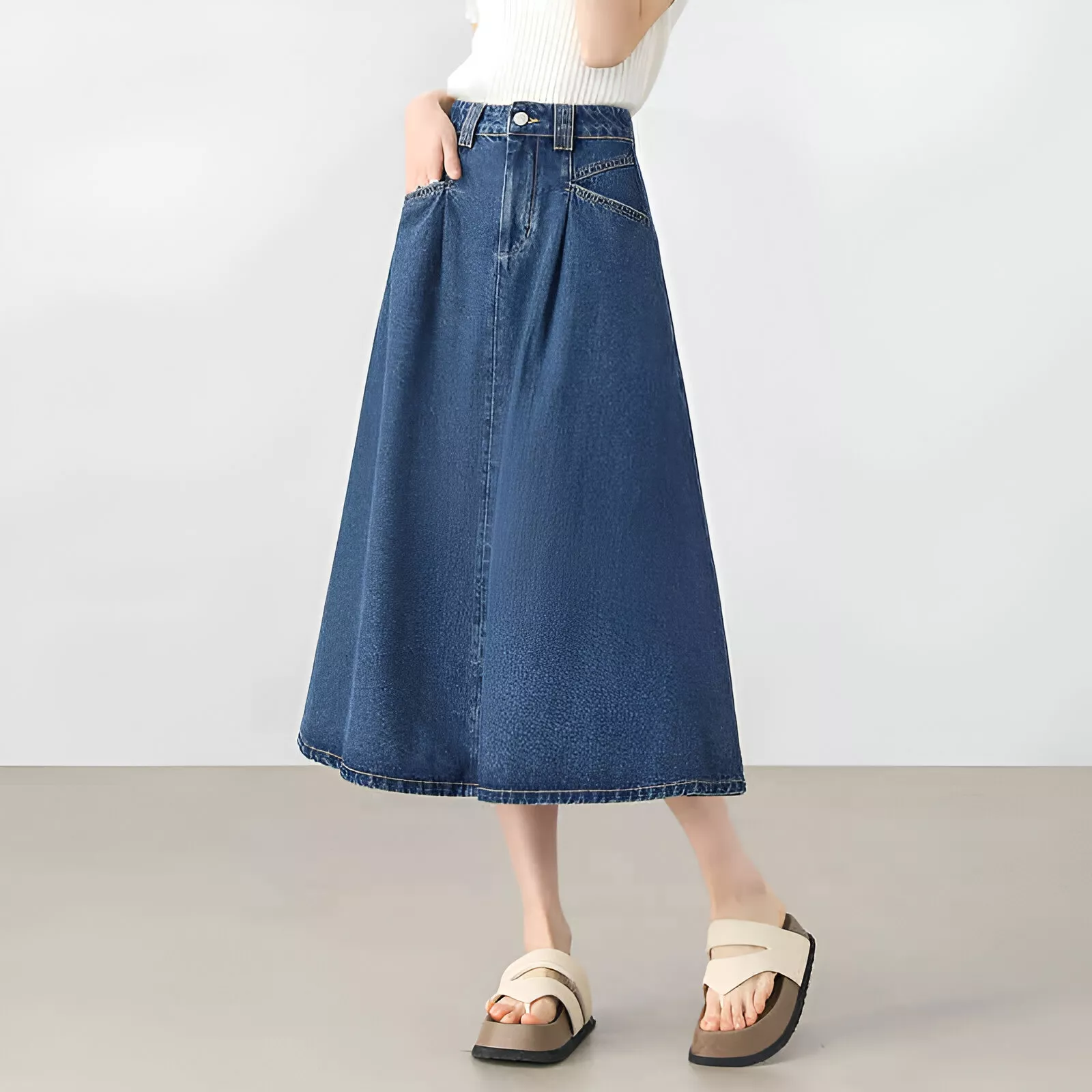 Add a touch of vintage elegance to your wardrobe—grab this denim A-line skirt now and redefine your everyday style!