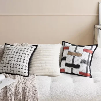 Plaid Knit Throw Pillow Cover – 18×18″ Modern Geometric Waist Cushion for Sofa & Bay Window