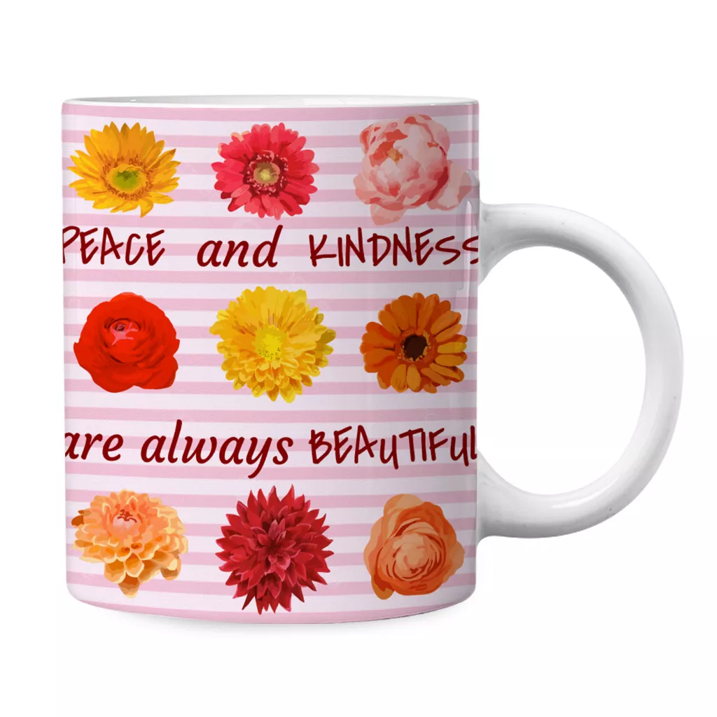Peace and Kindness Are Always Beautiful 11oz Mug – Floral Ceramic Mug – Positive Thoughts Coffee and Tea Cup