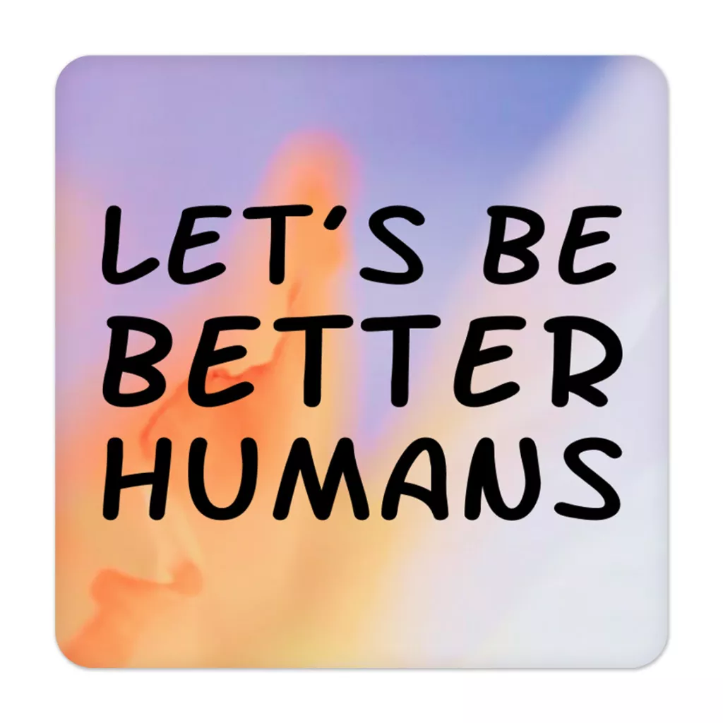 Let’s Be Better Humans Square Coaster 4-Piece Set – Inspirational Coasters for Drinks – Self Love Coffee Tea Mug Coasters