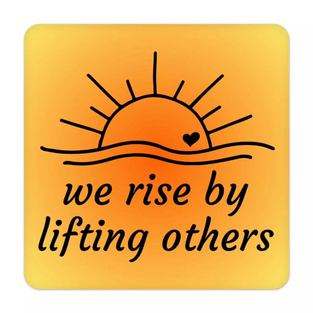 We Rise By Lifting Others Square Coaster 4-Piece Set – Positive Motivational Coasters for Drinks – Sun Graphic Coffee Tea Mug Coasters