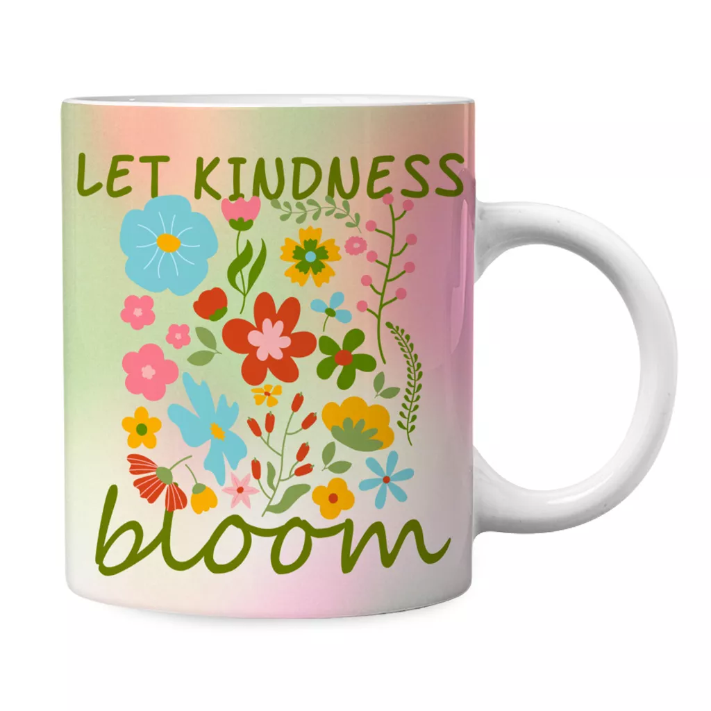 Let Kindness Bloom 11oz Mug – Be Kind Ceramic Mug – Retro Flowers Coffee and Tea Cup