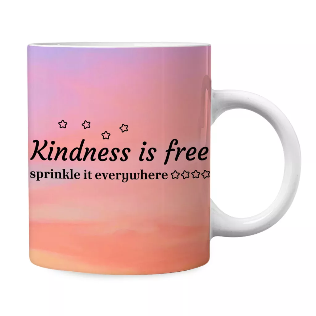 Kindness Is Free 11oz Mug – Minimalist Ceramic Mug – Inspirational Quotes Coffee and Tea Cup