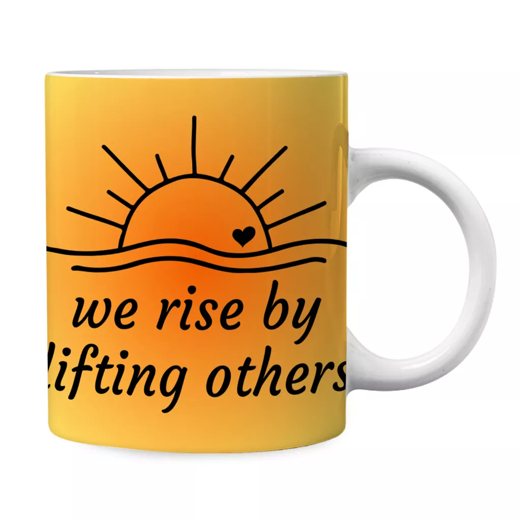 We Rise By Lifting Others 11oz Mug – Sun Graphic Ceramic Mug – Positive Motivational Coffee and Tea Cup