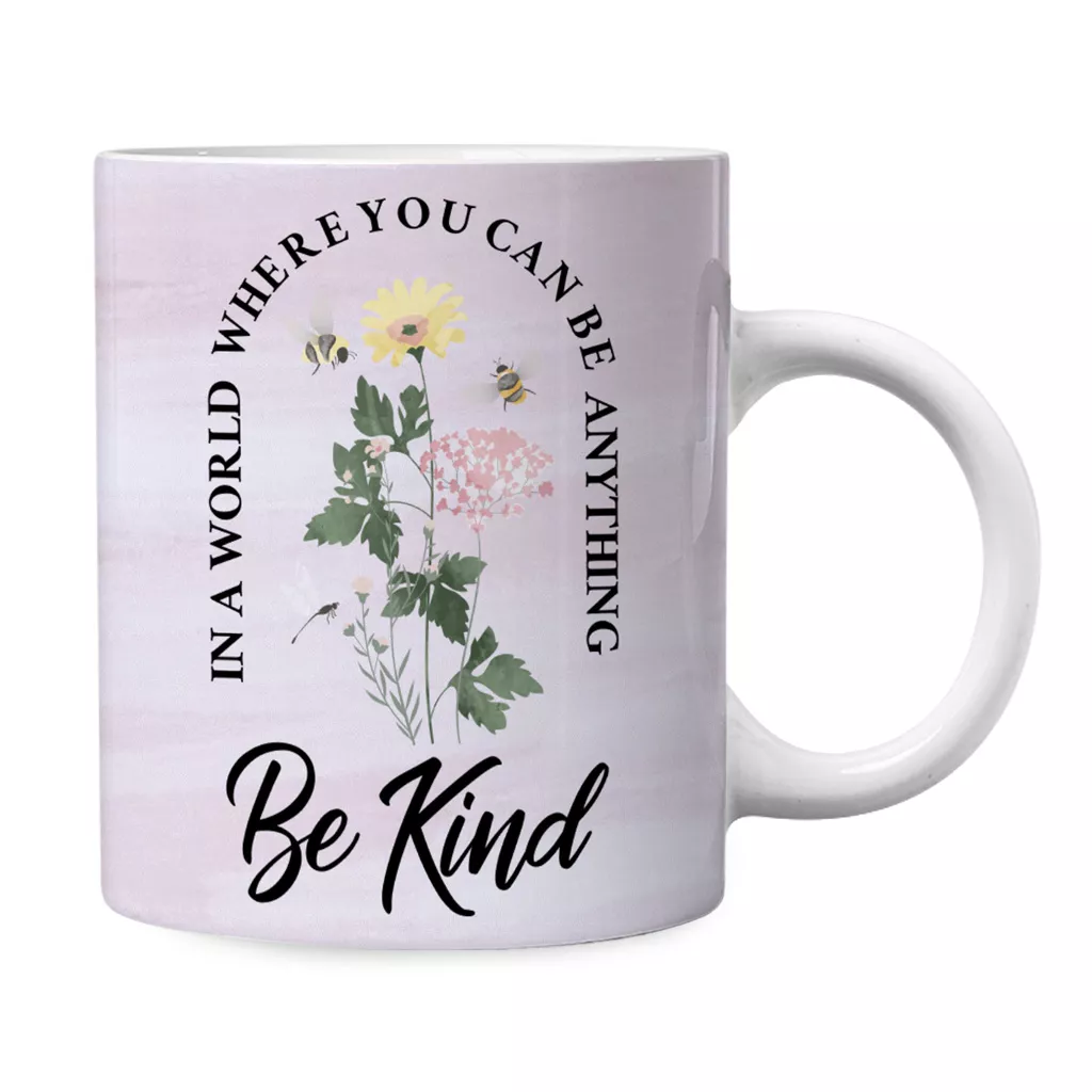 In A World Where You Can Be Anything Be Kind 11oz Mug – Cute Flowers Ceramic Mug – Wildflowers Coffee and Tea Cup