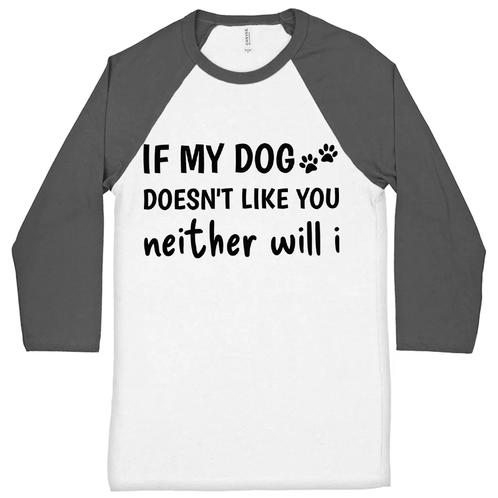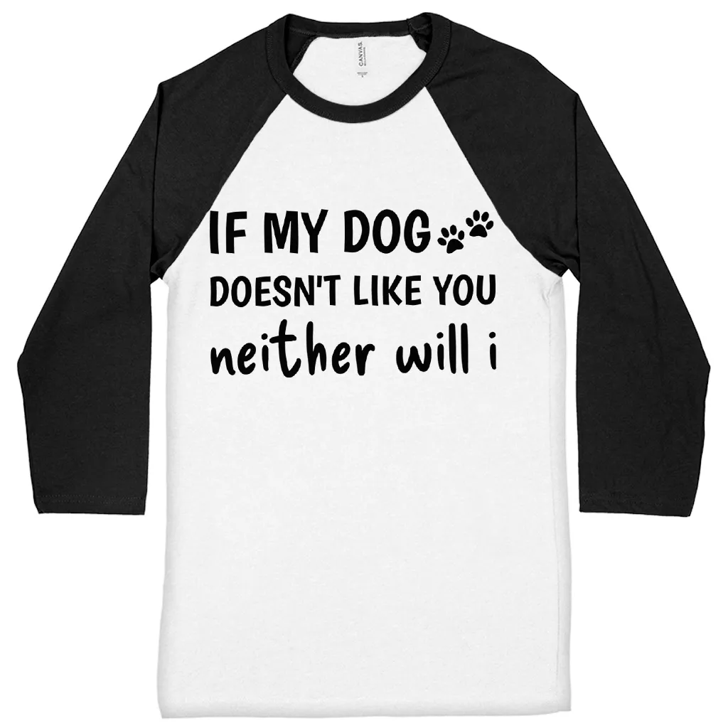 If My Dog Doesn’t Like You Neither Will I Baseball T-Shirt – Dog Love 3/4 Sleeve – Dog Meme Raglan Jersey Shirt