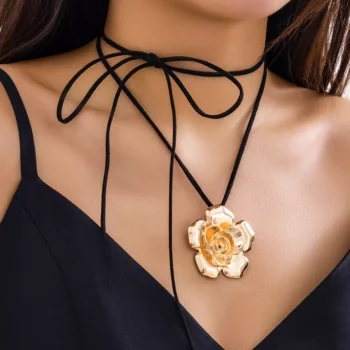 Goth Black Velvet Rose Flower Pendant Choker Necklace