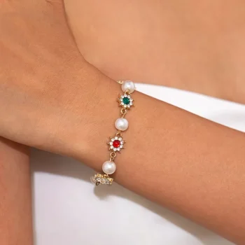 Elegant Pearl & Rhinestone Flower Charm Bracelet – Bridal & Gothic Glam