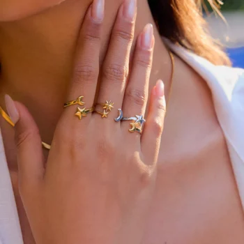 18K Gold-Plated Star and Moon Open Ring – Stylish Waterproof Jewelry