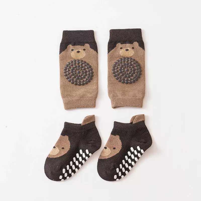 This set is more than just practical – it’s a fun, stylish way to help your baby stay safe as they learn to crawl and walk. The soft cotton material ensures your little one’s skin is protected, while the added cushioning on the knees offers extra comfort. Whether you’re at home or on the go, this set makes it easy to keep your baby moving with ease. Plus, the anti-slip socks provide that added bit of safety to prevent slips and falls on slick floors.