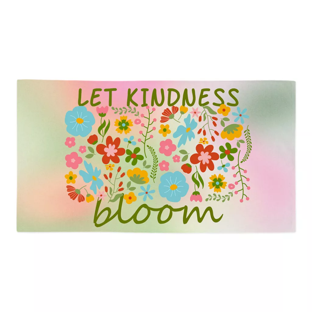 Let Kindness Bloom Bath Spa Towel – Retro Flowers Polycotton Towel – Be Kind Gift Towel