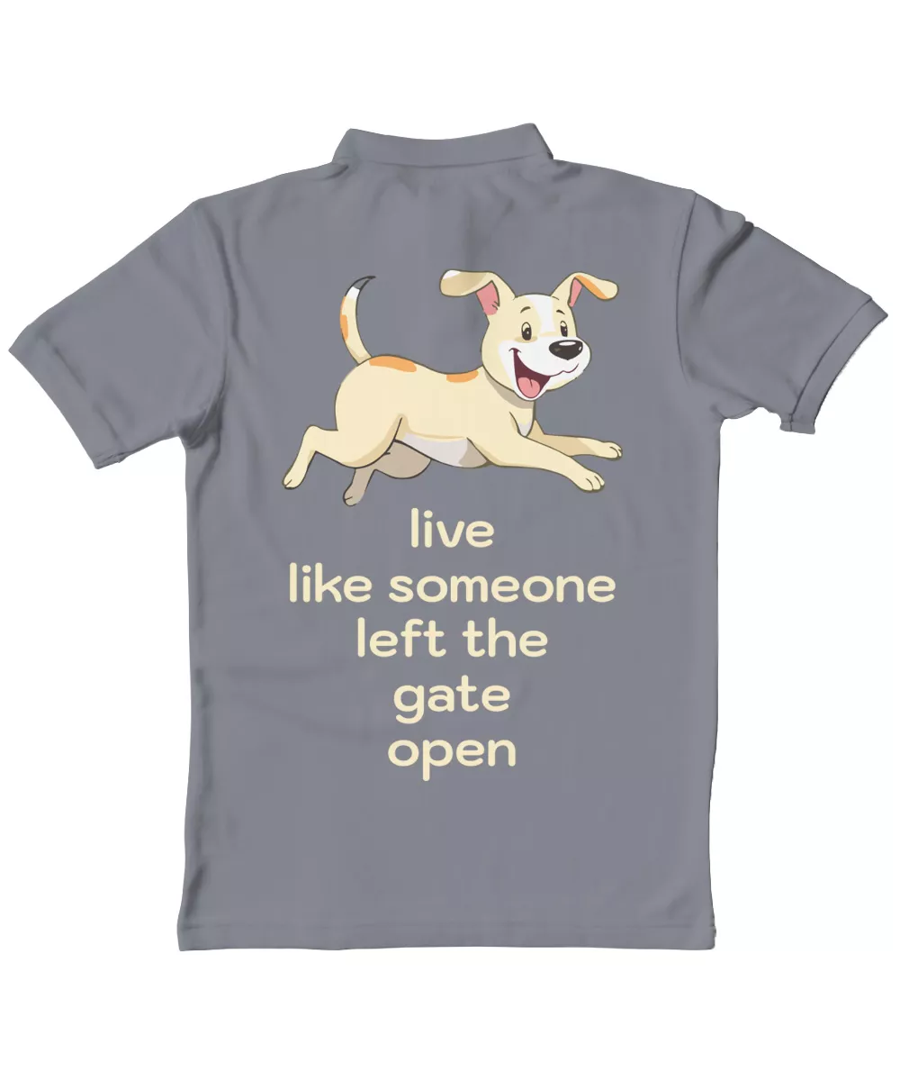 Live Like Someone Left the Gate Open adidas Polo Shirt – Positive Message Short Sleeve Tactical Shirts – Inspirational Lightweight Golf Shirts