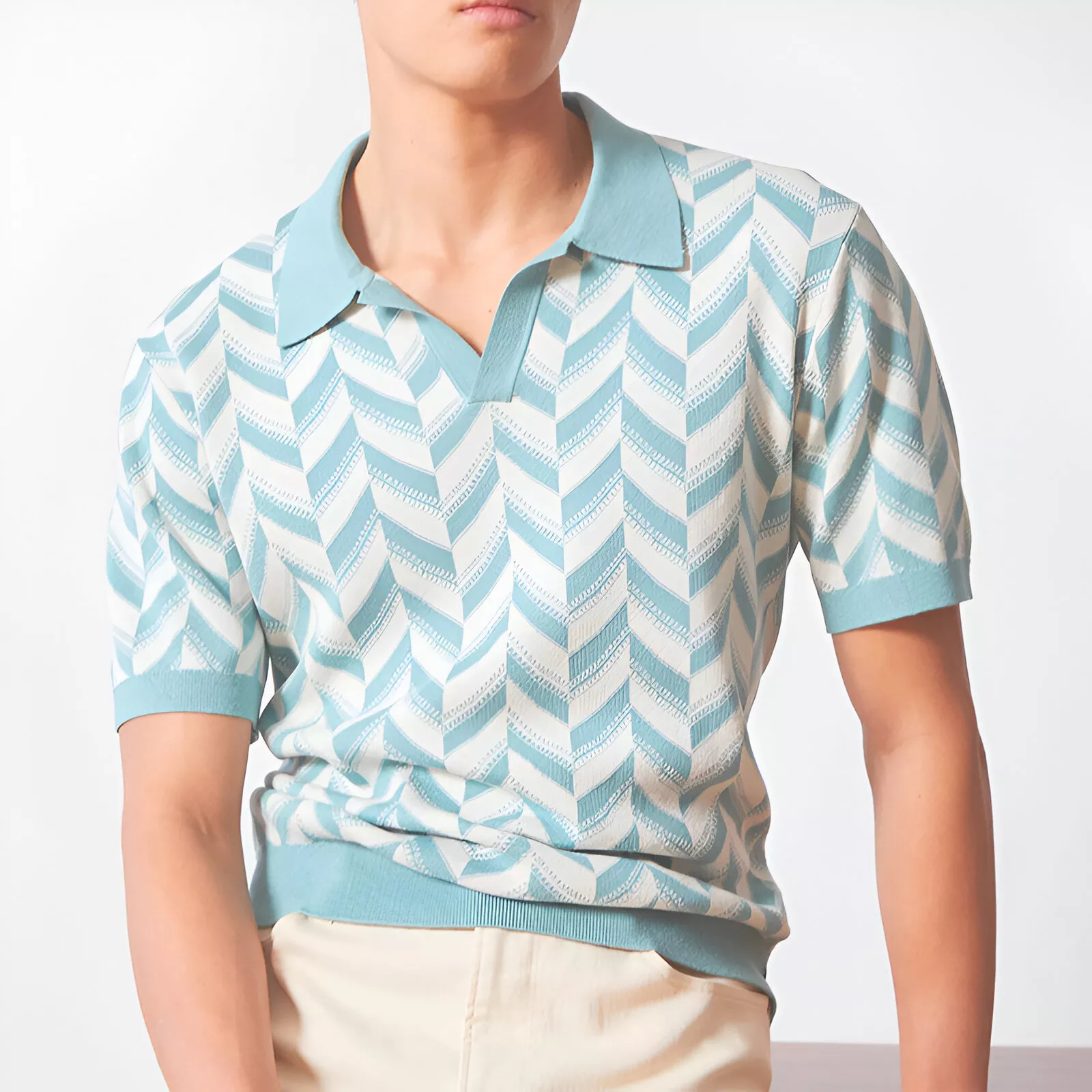 Step into refined comfort and timeless fashion with our Luxury Men’s Summer Knit Polo Shirt. Designed for the modern man who values both style and substance, this short sleeve polo blends smart-casual sophistication with breathable wearability. The jacquard knitted design and geometric pattern create a unique textured look, while the contrast color details add a contemporary touch that sets you apart wherever you go.