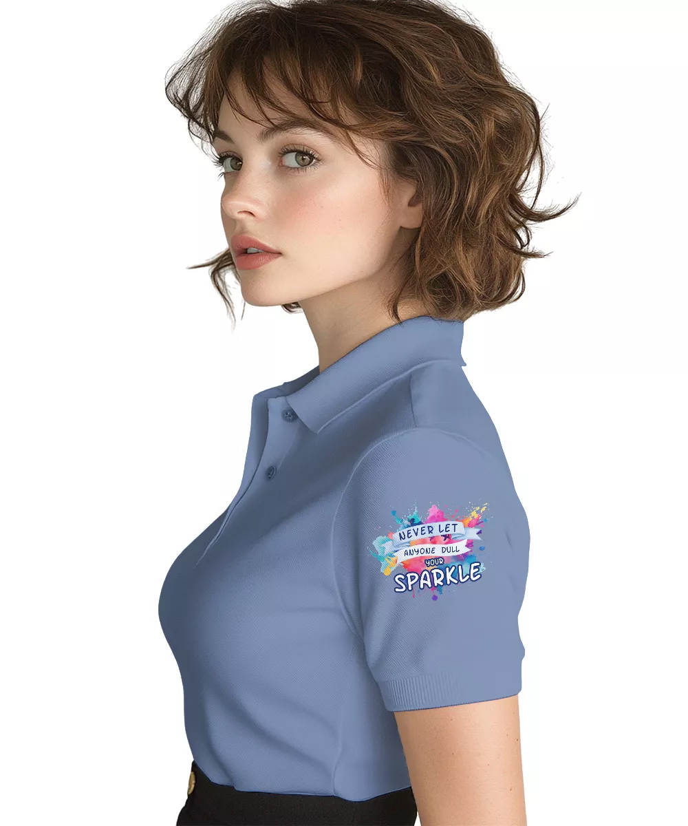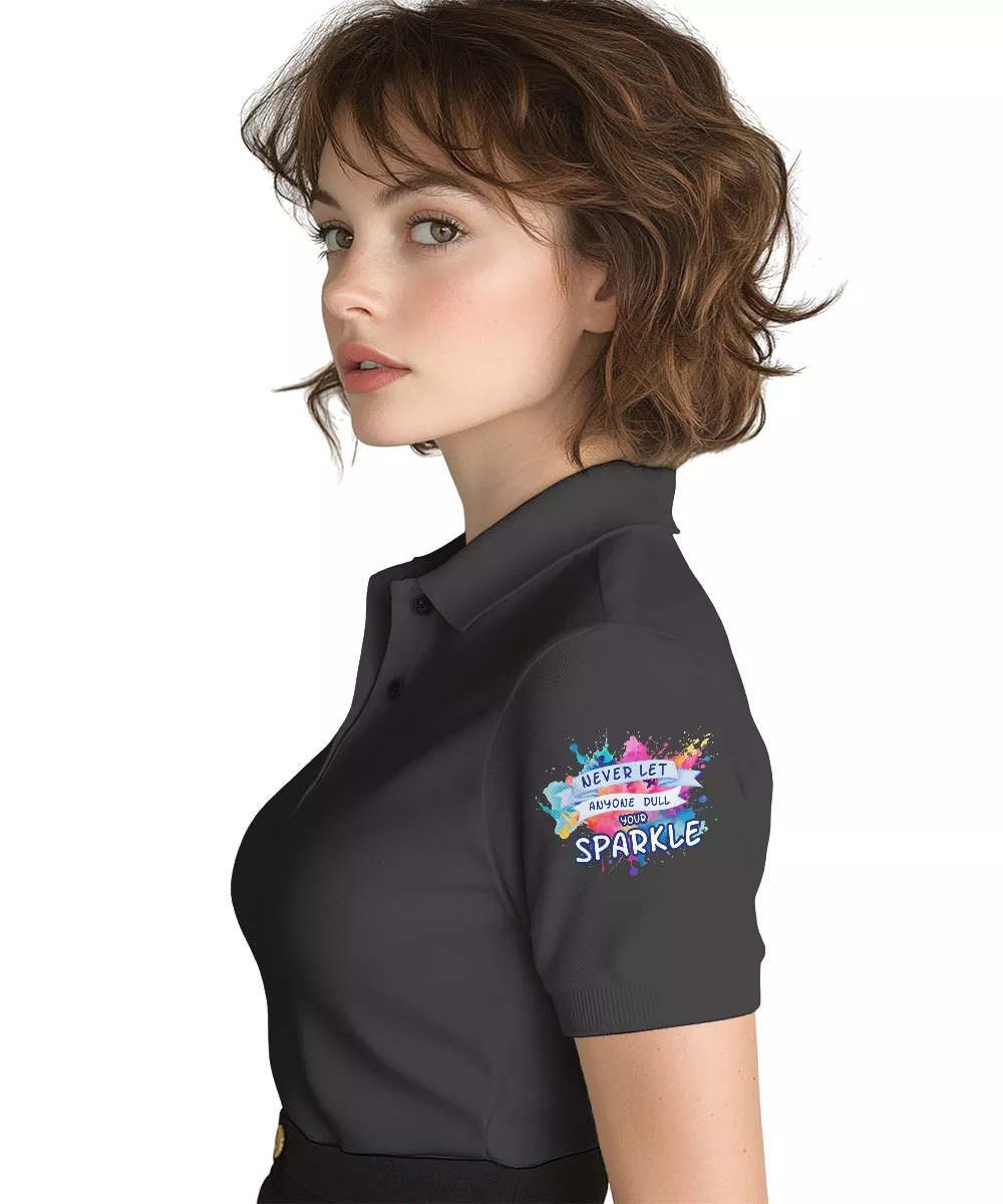 Never Let Anyone Dull Your Sparkle adidas Polo Shirt – Positive Vibes Short Sleeve Tactical Shirts – Colorful Graphic Lightweight Golf Shirts