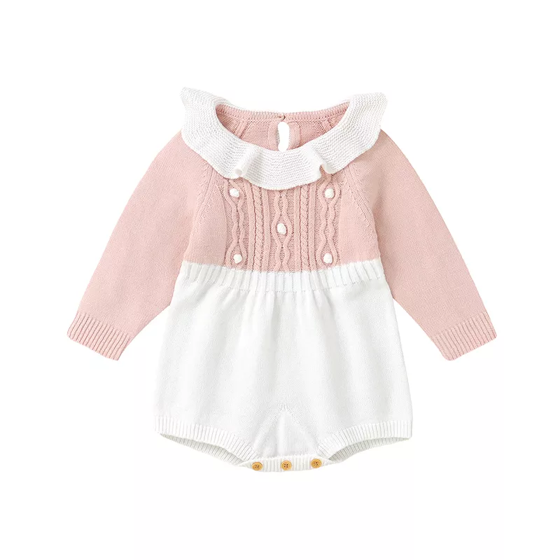 Newborn Baby Girls Cotton Knitted Long Sleeve Bodysuit Romper