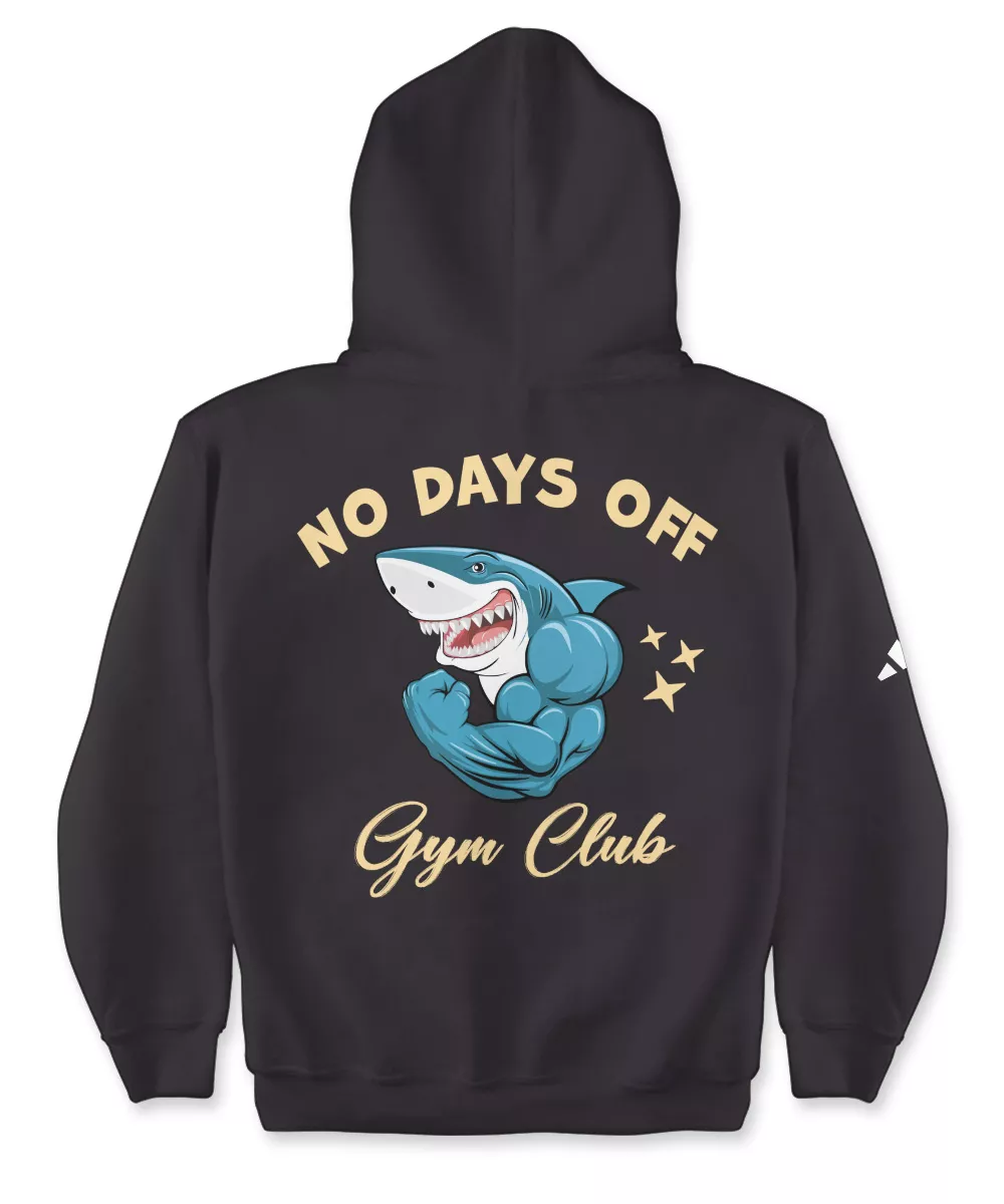 No Days Off adidas Hoodie – Muscular Shark Unisex Fleece Hoodie – Fitness Motivation Hooded Sweatshirt