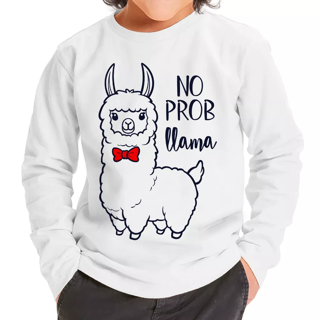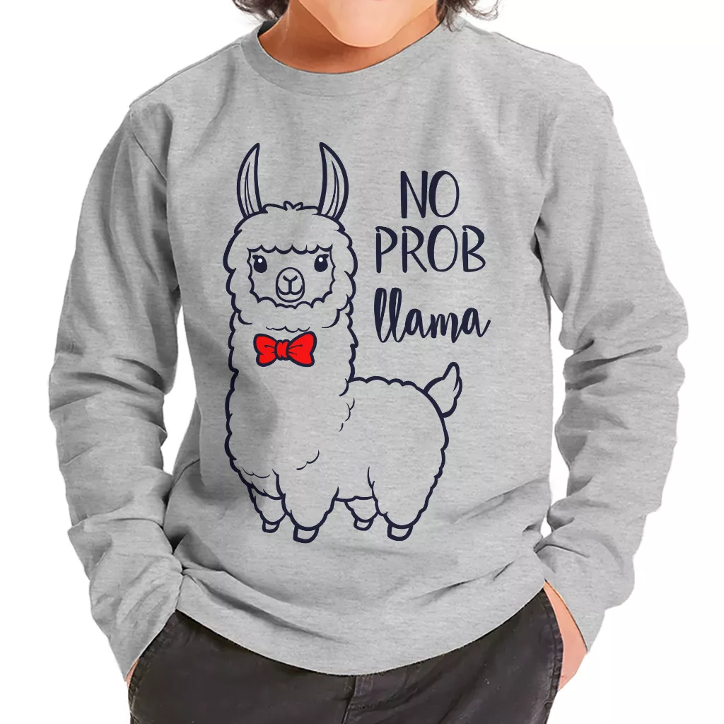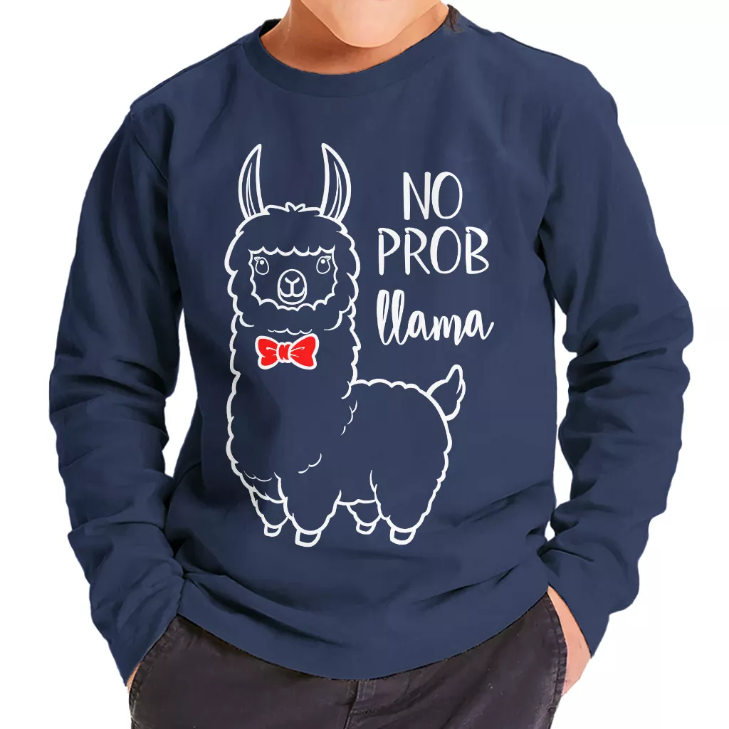 No Probllama Toddler Long Sleeve T-Shirt – Cute Animal Boy Girl Tee – Funny Llama T-Shirt for Kids