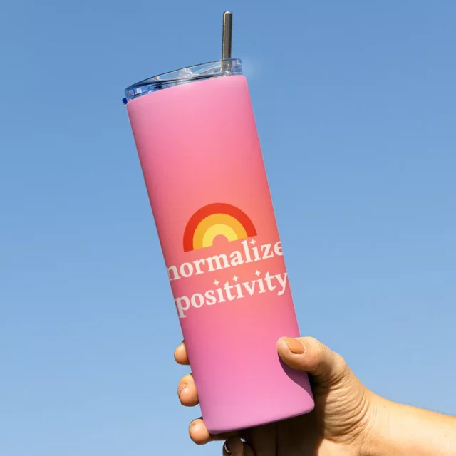 Normalize Positivity 20oz Skinny Tumbler – Affirmation Travel Mug – Positive Message Stainless Steel Tumbler
