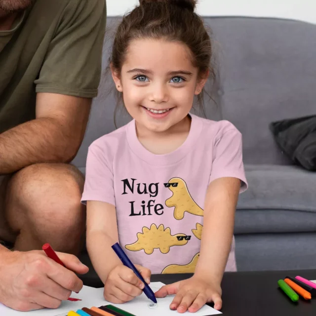 Nug Life Toddler Cotton T-Shirt – Dino Nugget Short Sleeve Tee – Cool Graphic T-Shirt for Kids