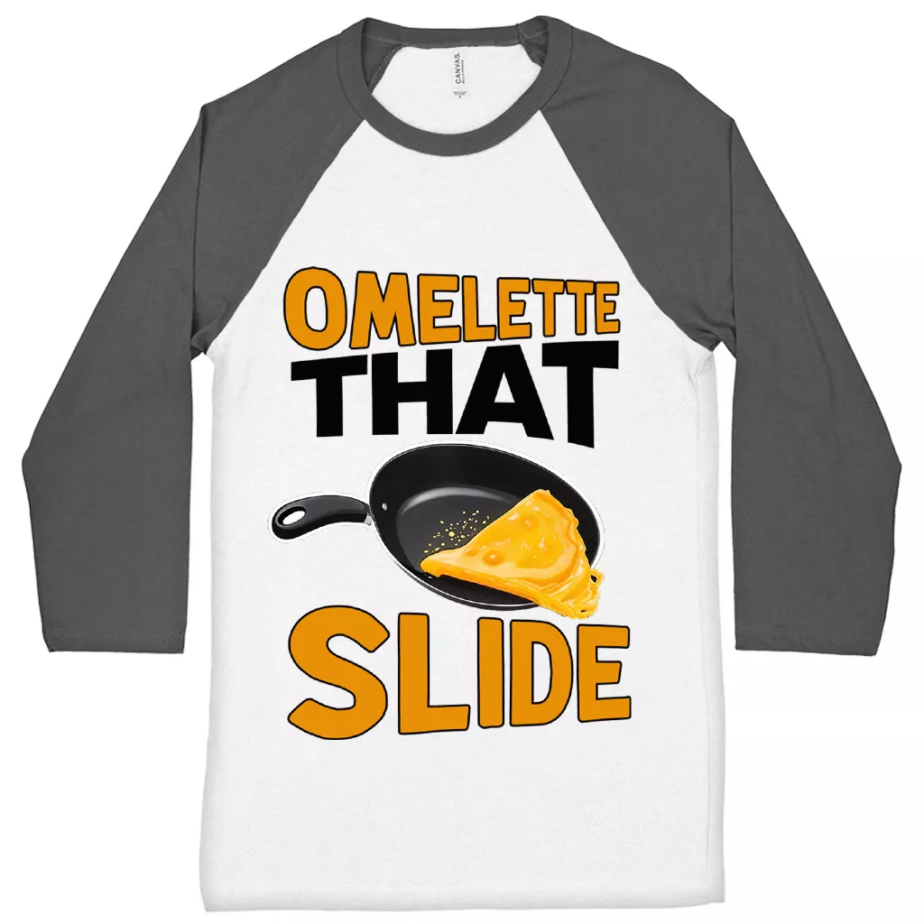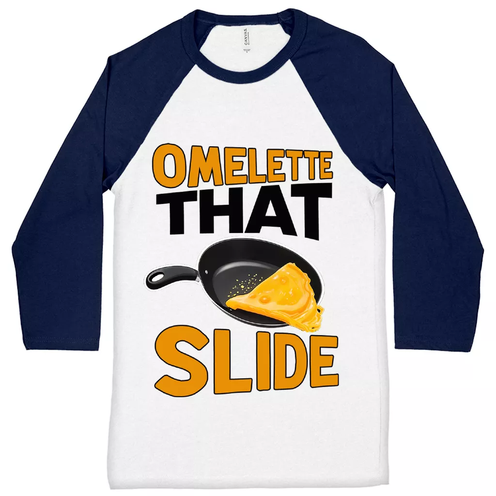 Omelette That Slide Baseball T-Shirt – Breakfast Graphic 3/4 Sleeve – Wordplay Gift Raglan Jersey Shirt