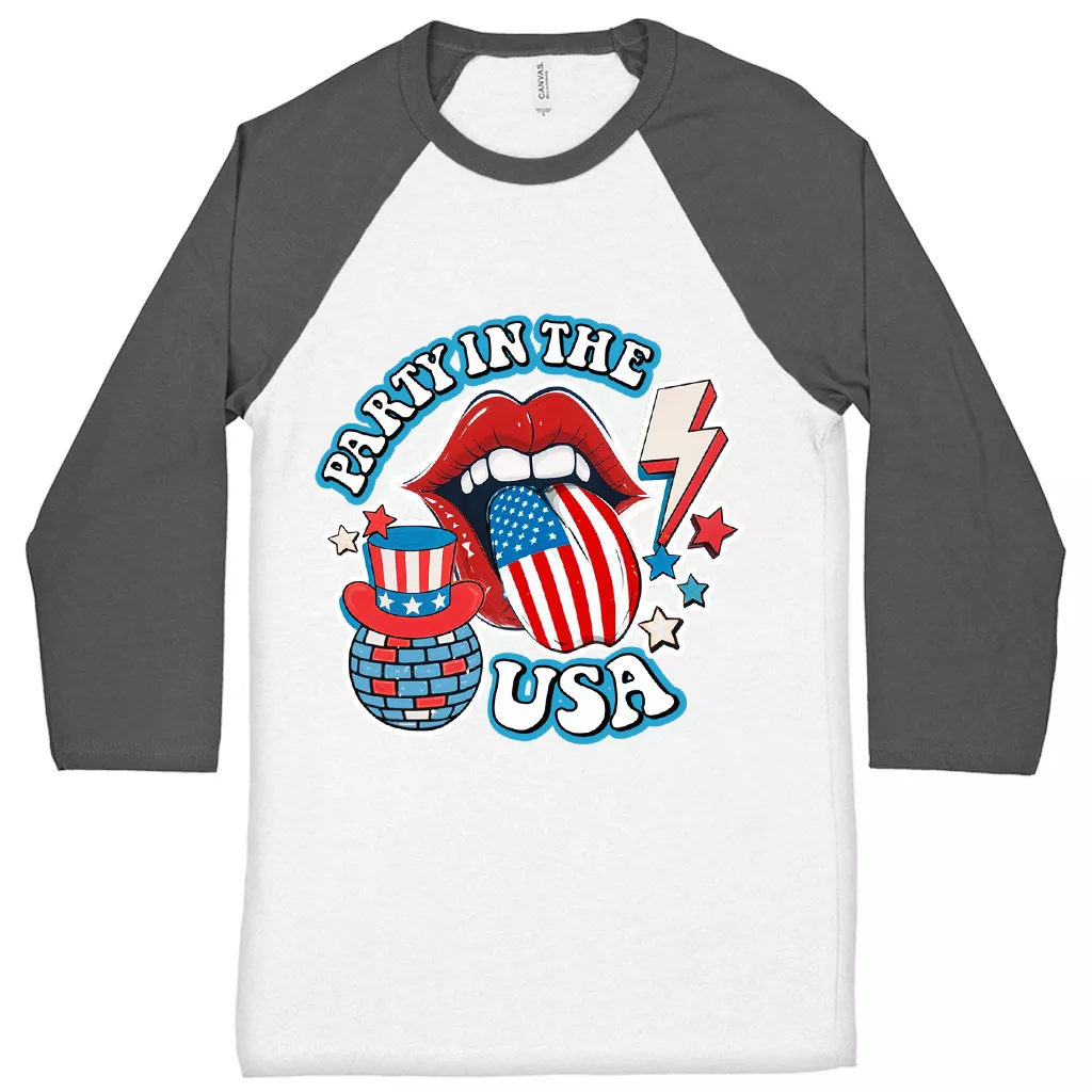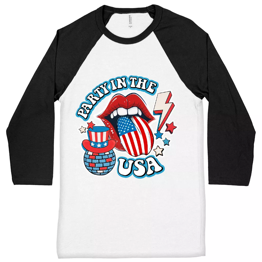 Party in The USA Baseball T-Shirt – Retro Graphic 3/4 Sleeve – Trendy Usa Raglan Jersey Shirt