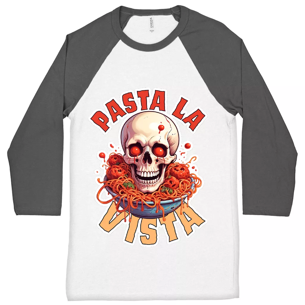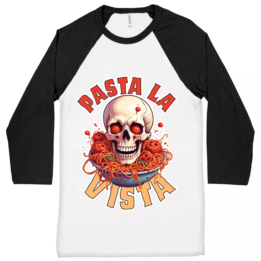 Pasta La Vista Baseball T-Shirt – Food Pun 3/4 Sleeve – Funny Foodie Raglan Jersey Shirt
